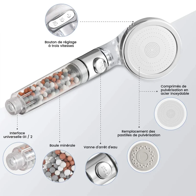 SOFT, SPRING-LIKE WATER –Our new mixture of three types of mineralised Germanium beads will soften hard water, resulting in a natural spring-like quality. HOMEDEC Eco mineral shower head will help you restore pH balance to your hair and body by giving you much cleaner, soften and purify shower water.