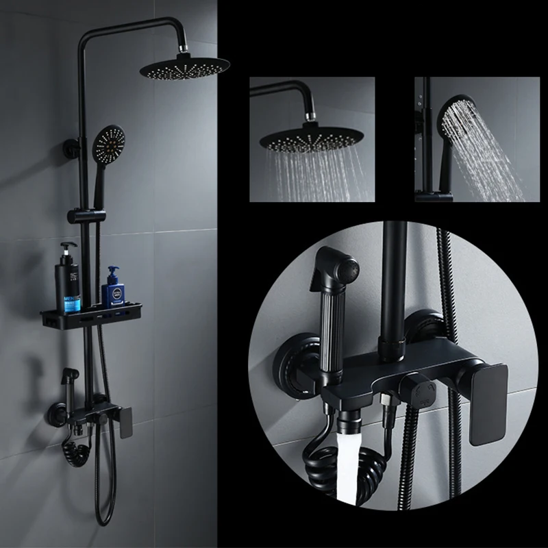 High quality hot and cold matte black color three functions shower faucet brass shower set