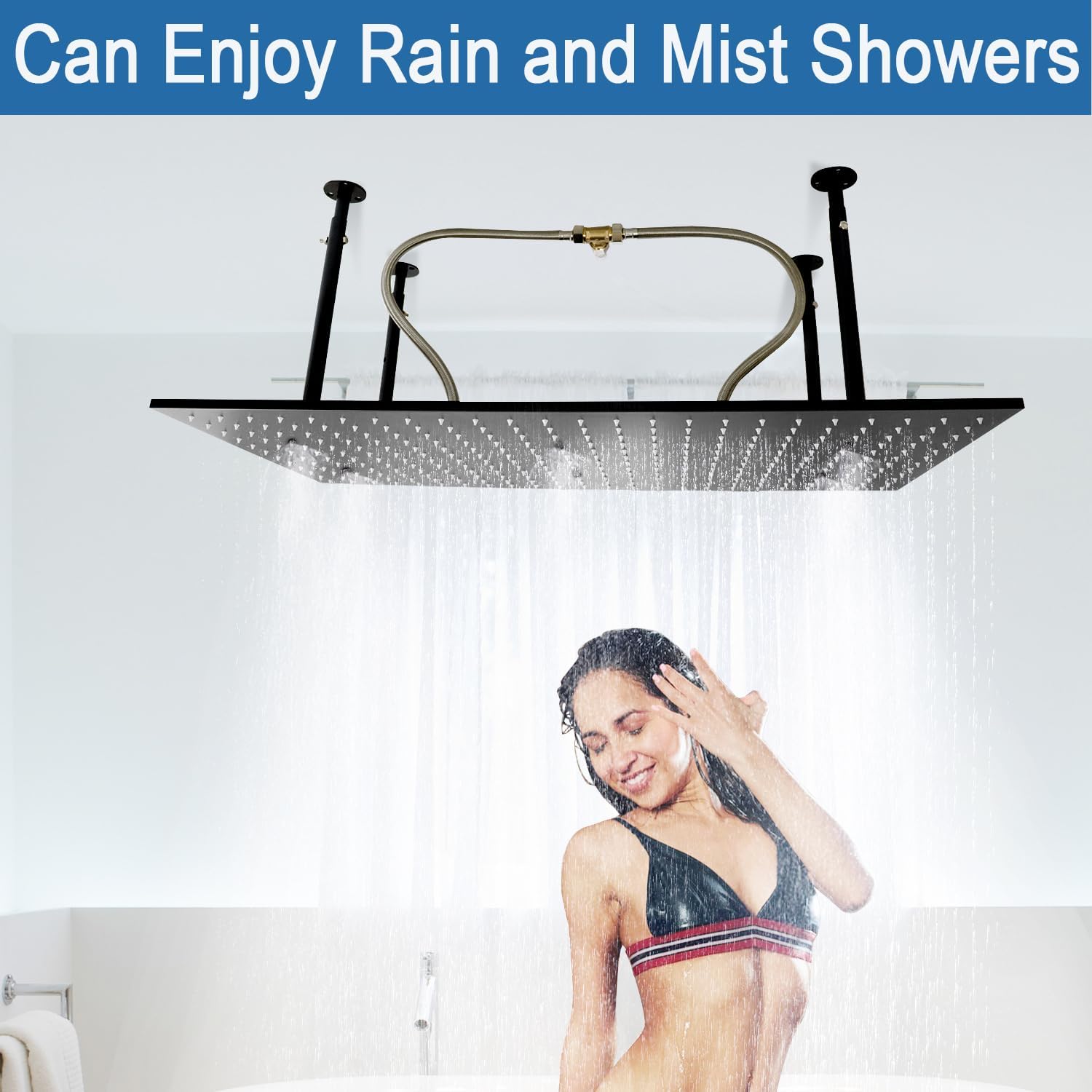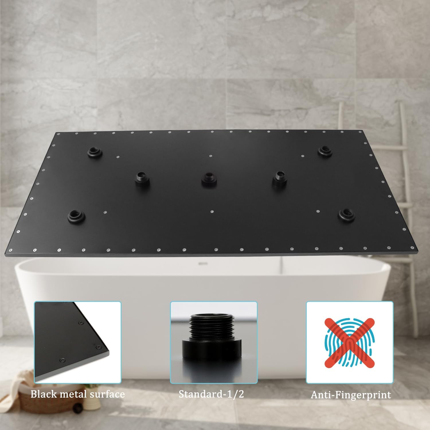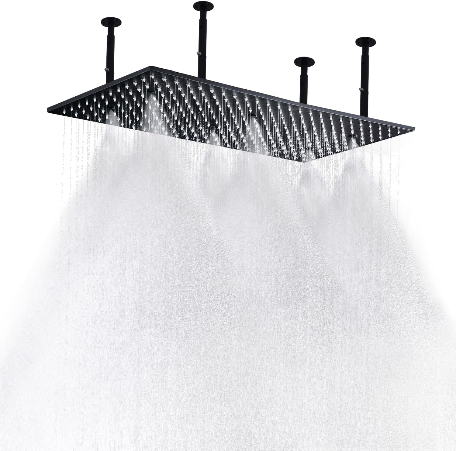 HOMEDEC 2-Functions Luxury High Pressure Rain Shower Head, 16″x32″ Large Ceiling Full Body Shower Head with Silicone Nozzles Rectangle Waterfall Showerhead, Black Finish