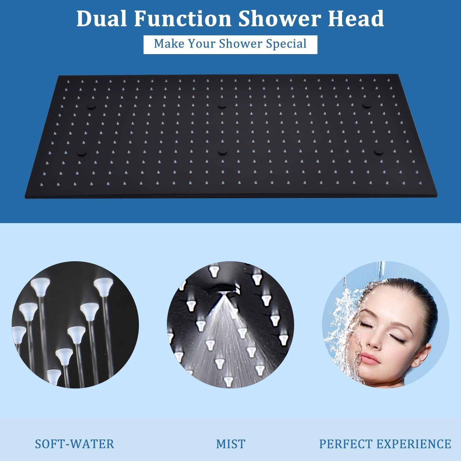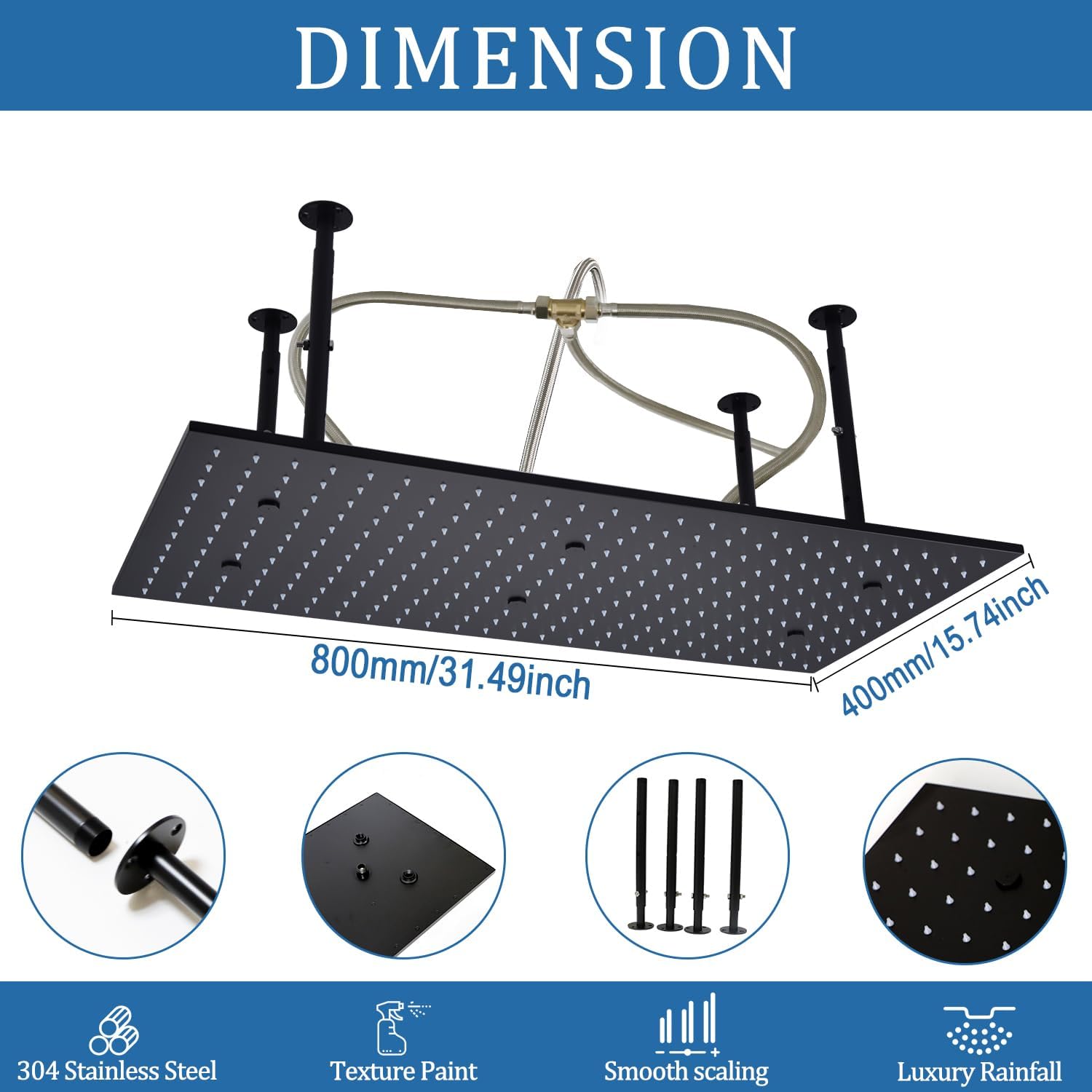• Measuring 16*32 inches, this showerhead is the perfect size to achieve a luxurious and spacious showering experience.