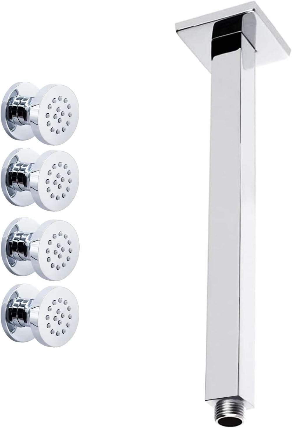 INCLUDING 4 body spray jets combination, spa-like bathroom with casual bath hardware accessories. This straight chrome shower arm can be used with 10”, 12″, 16” rain shower head.