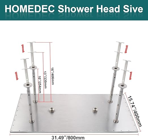 4.Shower head comes in size of 20″ x 40″ (500mm x 1000mm) and has two water inlets.