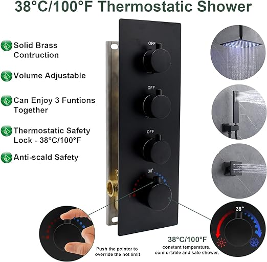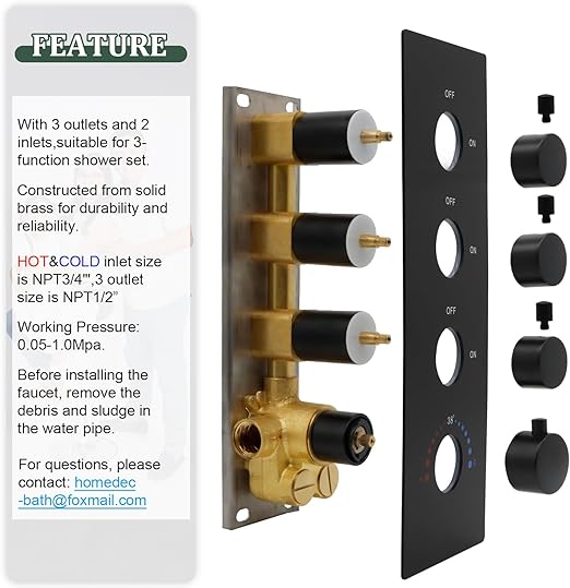 Be the first to review “HOMEDEC 3 Way Shower Diverter Valve, Matte Black 3 Function Thermostatic Mixer Brass Valve, Individual On Off Flow Control” Cancel reply