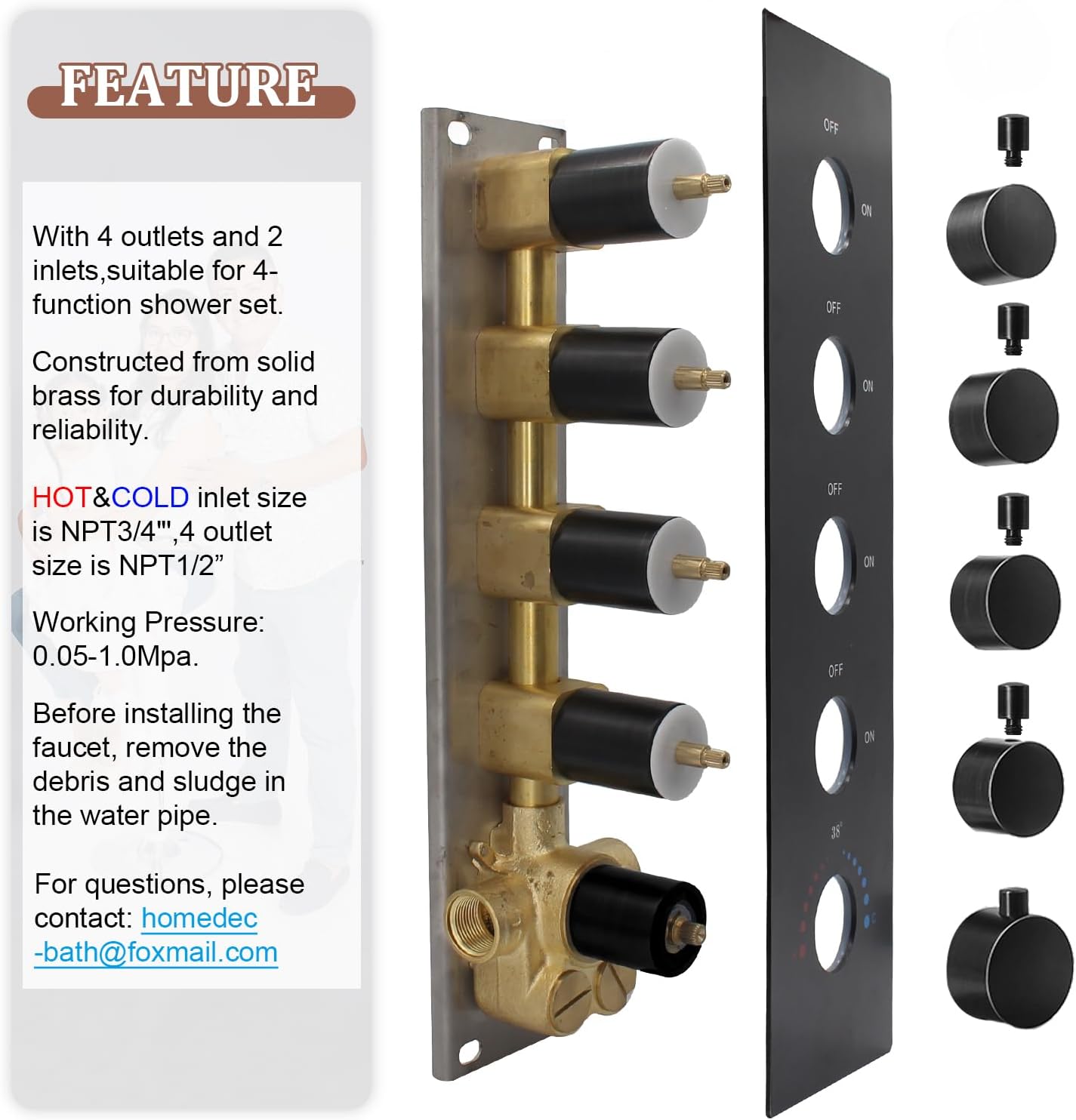 2. With 4 outlets and 2 inlets, suitable for 4-function shower set.