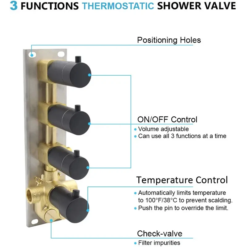uD83CuDD97 Precise Temperature Control. Universal thermostatic shower valve, pressure balancing shower diverter, which features scald prevention; More considerate for your family.nsiderate for your family.