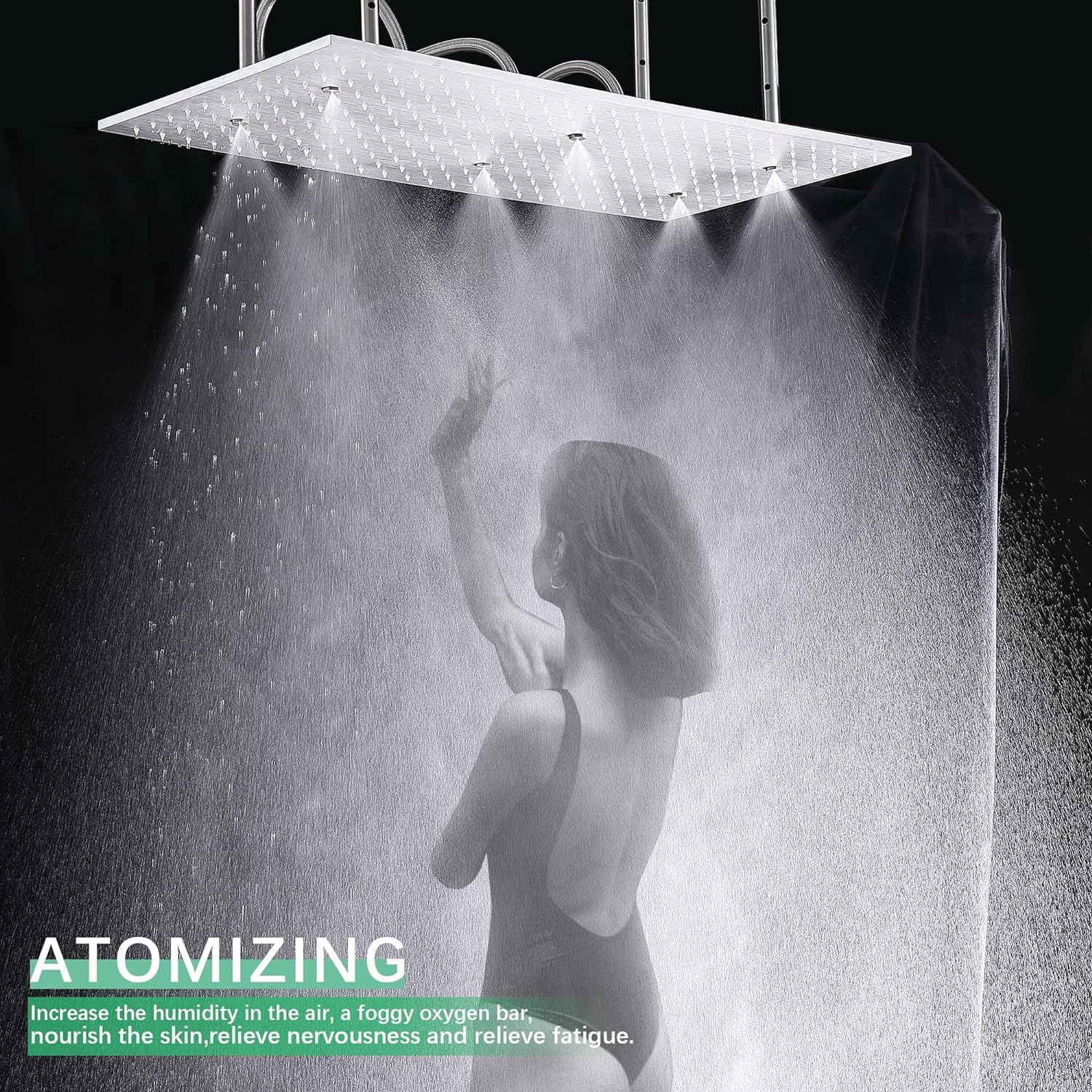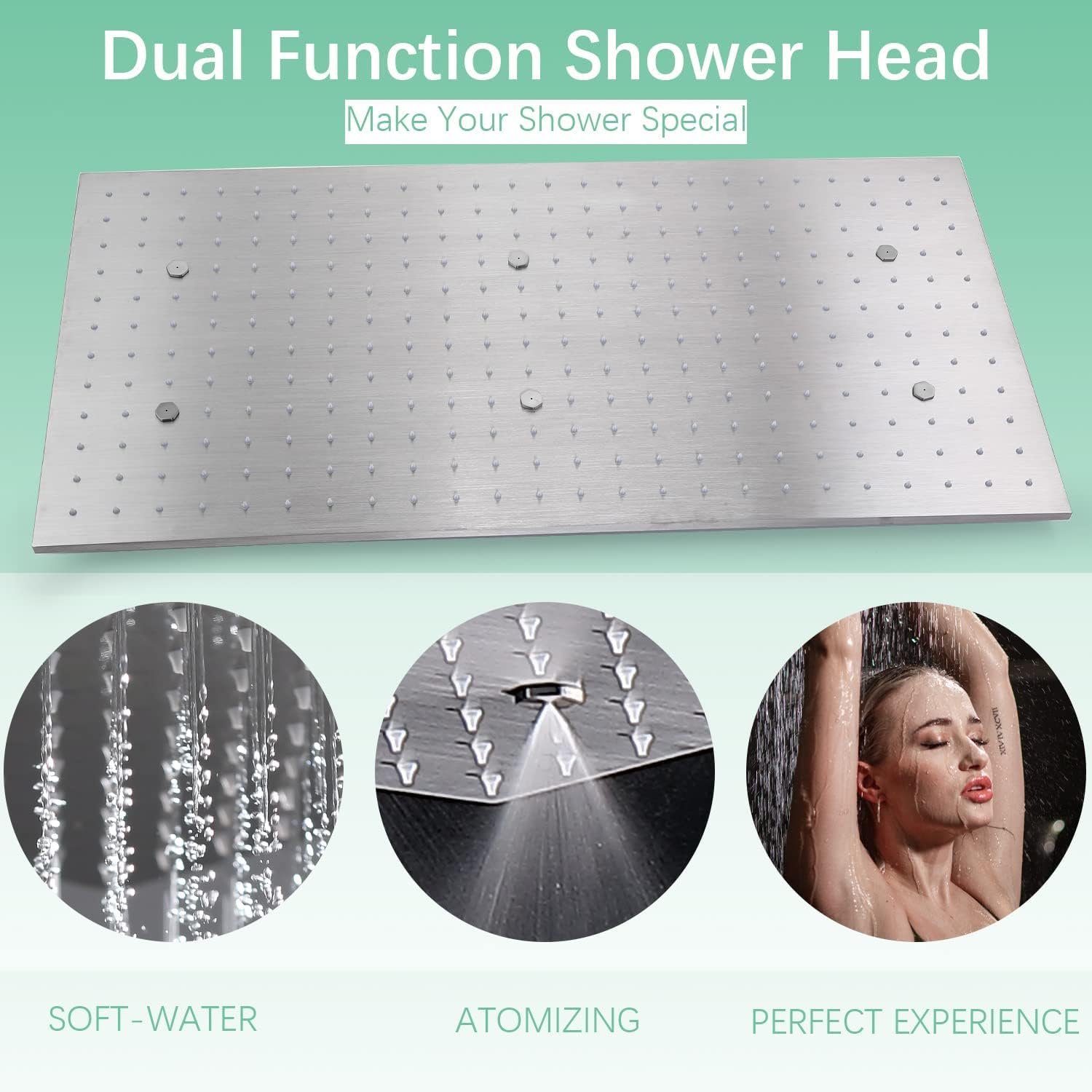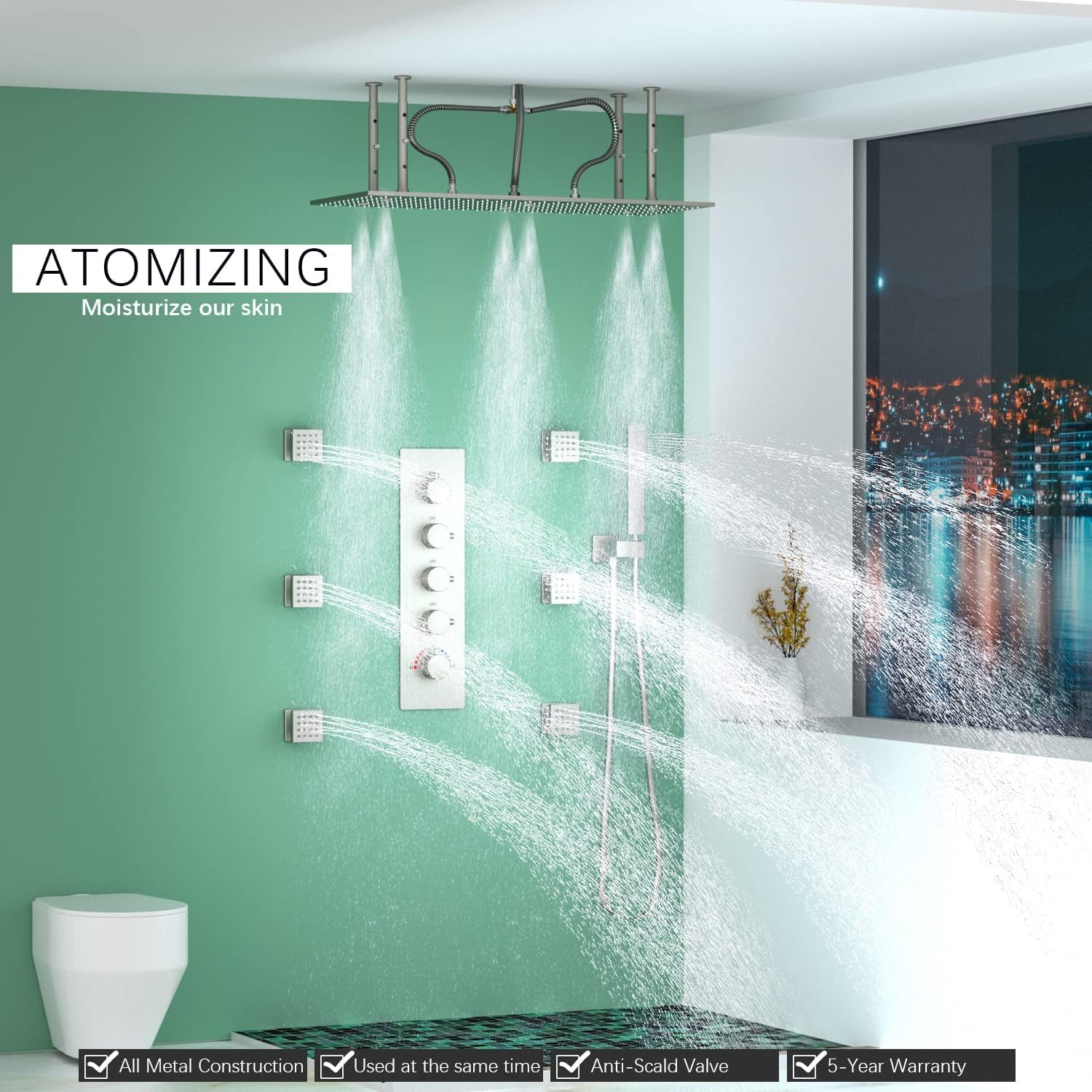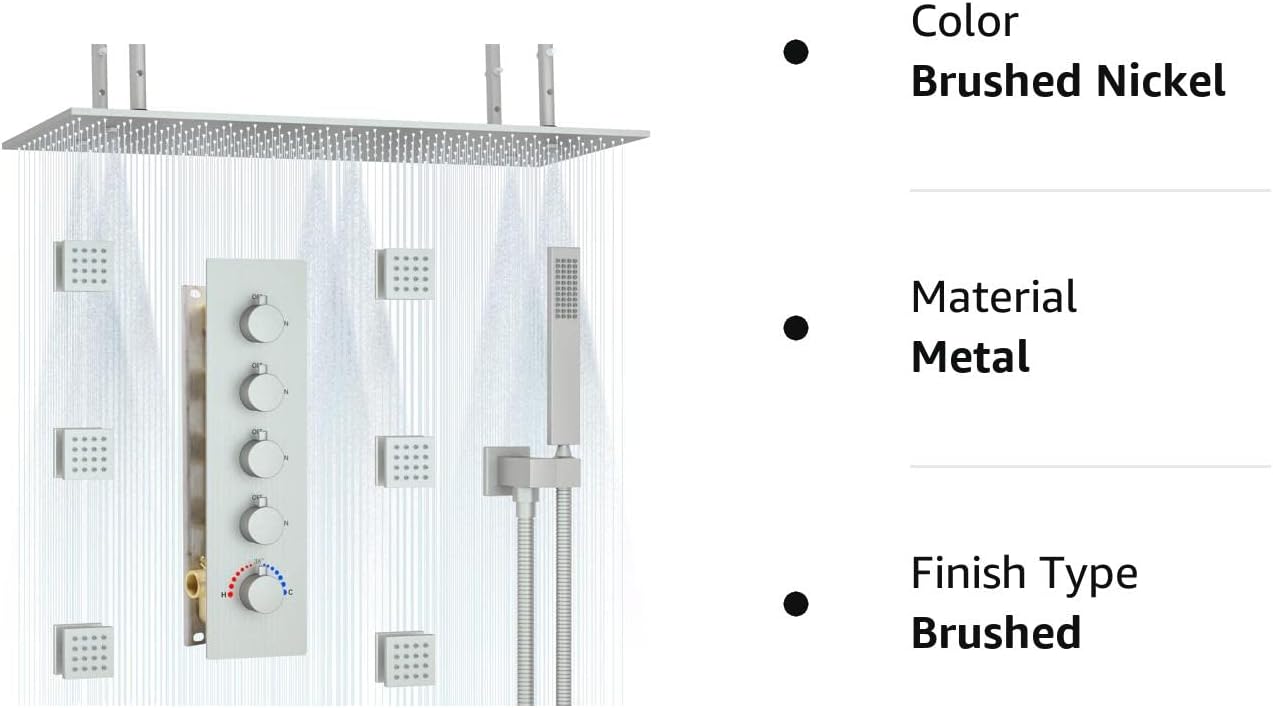 HOMEDEC Brushed Nickel Rainfall Mist Luxury Shower System – Super Large 15.7 X 31.5inch Dual Function Ceiling Shower Head with Body Jets and Handheld Spray Thermostatic Shower Set