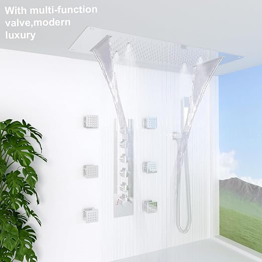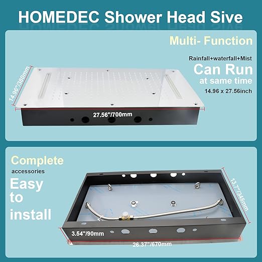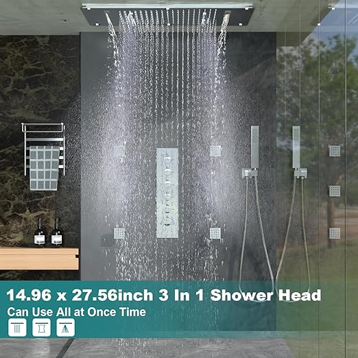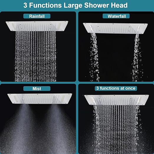 About this item 3-Function Shower Head — Meets a variety of shower needs, 3 in 1 shower head has 4 functions, respectively, rain, waterfall and spray. You can use one or more functions. Give you a luxurious and comfortable shower. Luxury Shower Head System — 14.96 x 27.56inch(380x700mm) oversized shower head, large enough shower space…