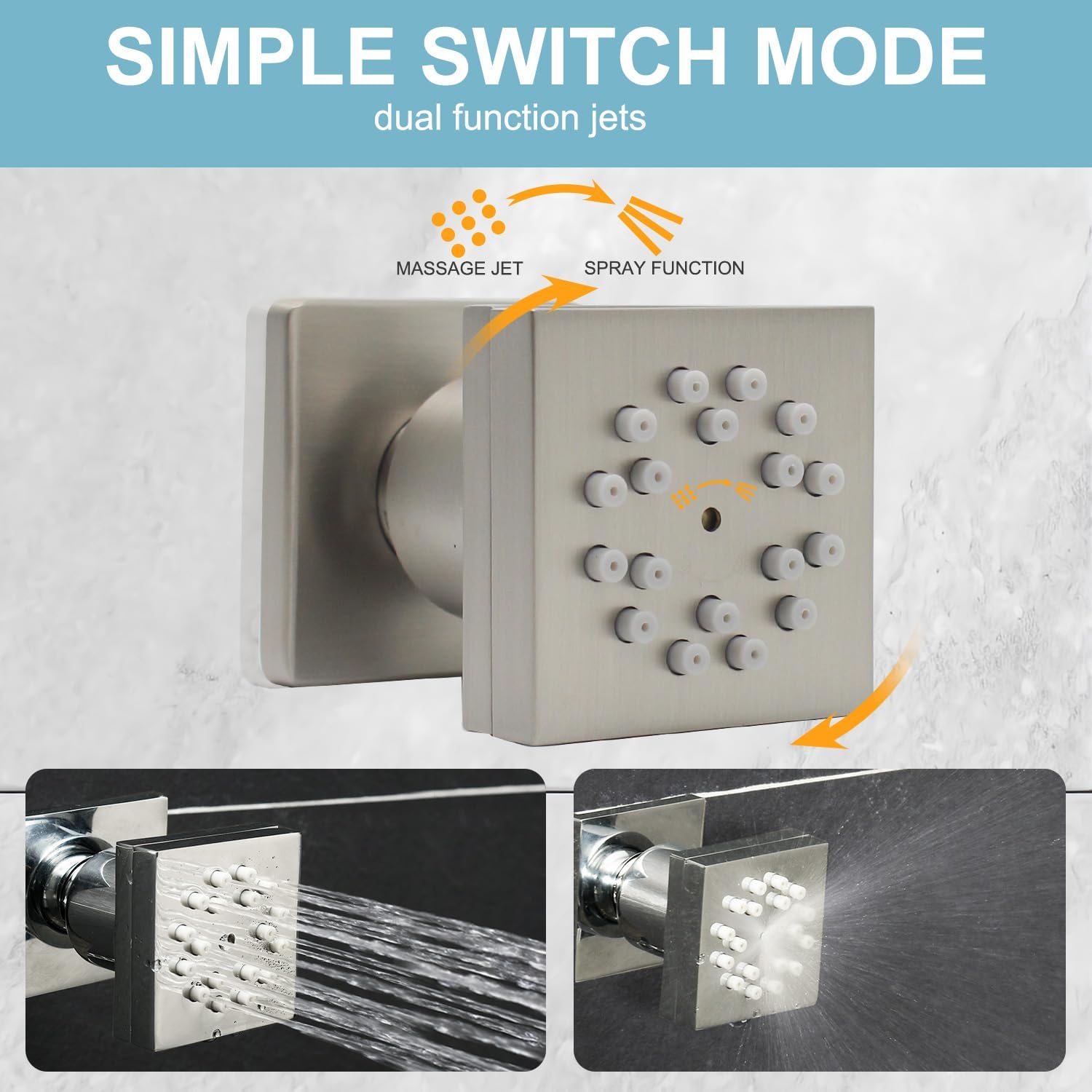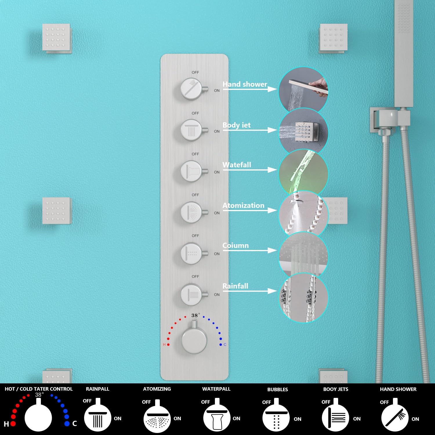 | Style | 4 Functions Shower Head(Rainfall,Waterfall,Mist,Water Column) |