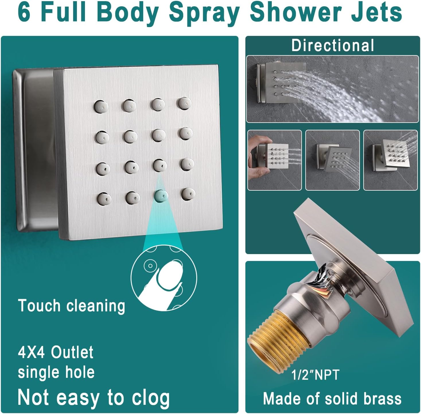 【CAN BE USED AT THE SAME TIME】All shower heads of this rain shower kit can be turned on at the same time. Easy to use, which function you want to use directly turns on, no need for complicated operation (every time you turn on the switch to adjust the temperature, and then press the water…