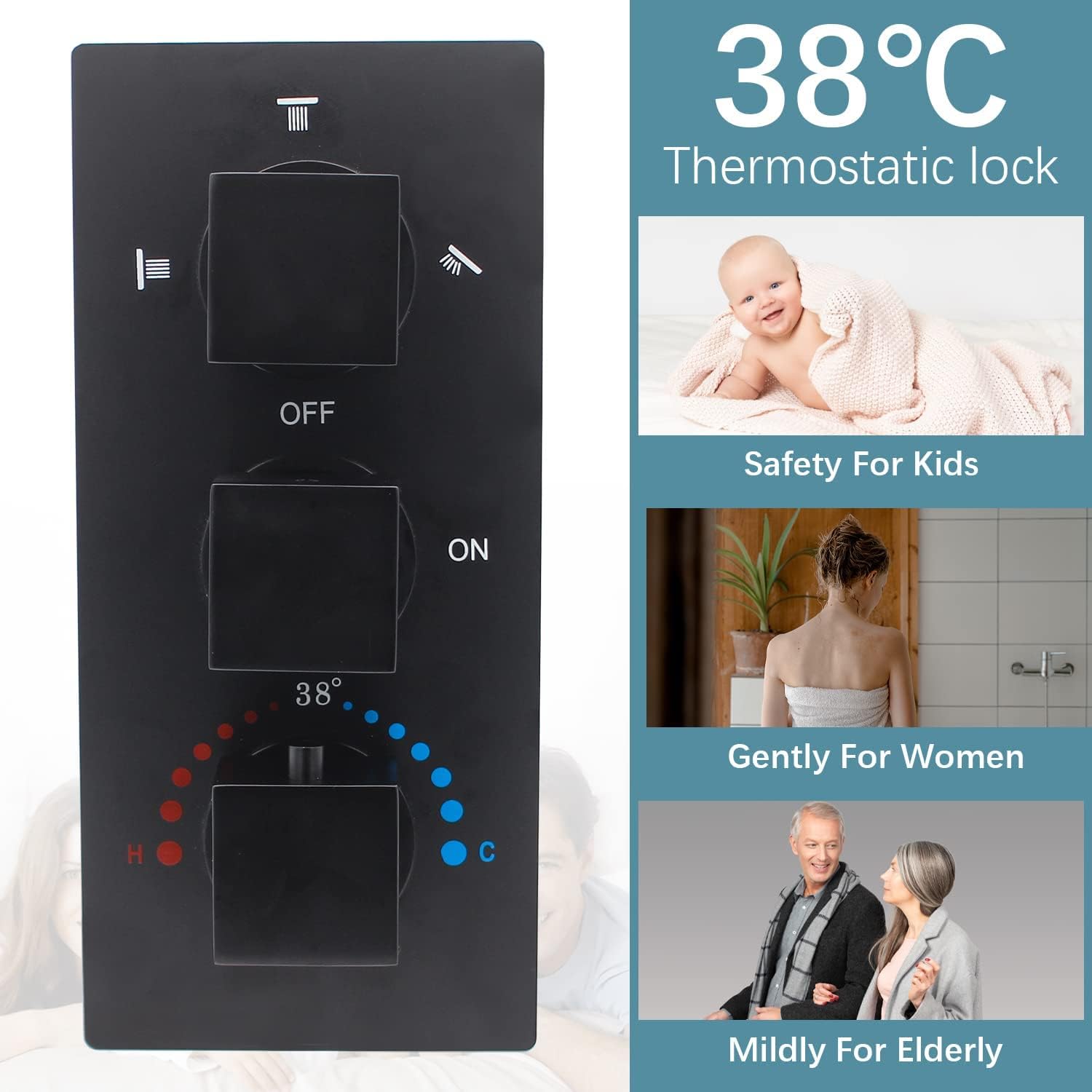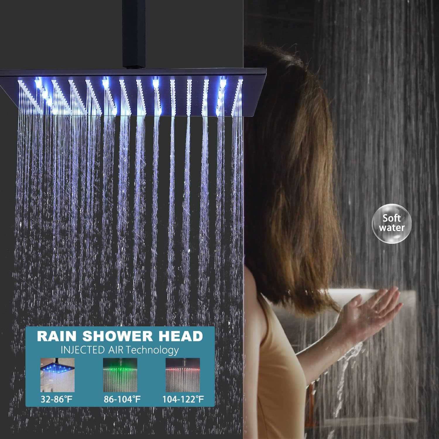 - LED’s unique design, the color will change with the temperature,*Blue 0-30C (32-86°F), *Green 30-40C (86-104°F), *Red 40-50C (104 -122°F), *Flashing Red 50℃-100℃. You will have a fantastic shower experience.