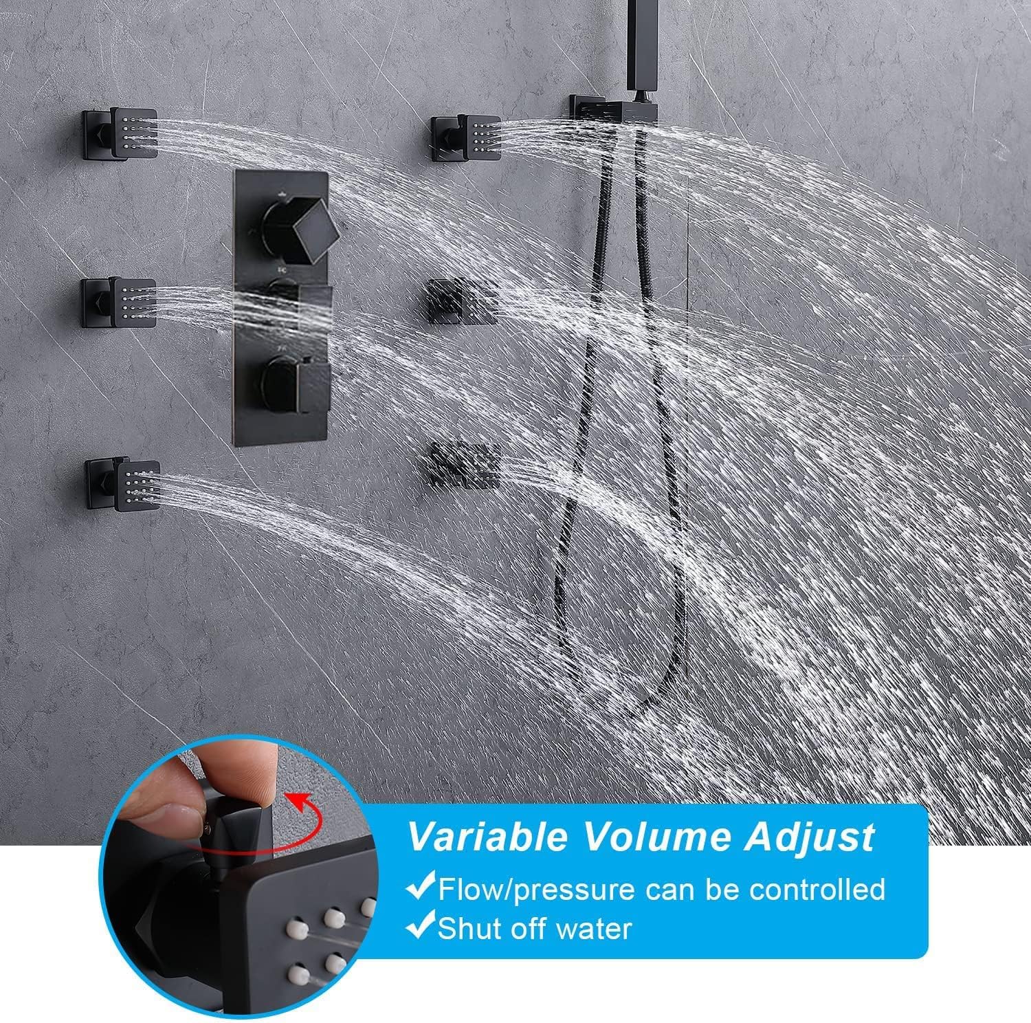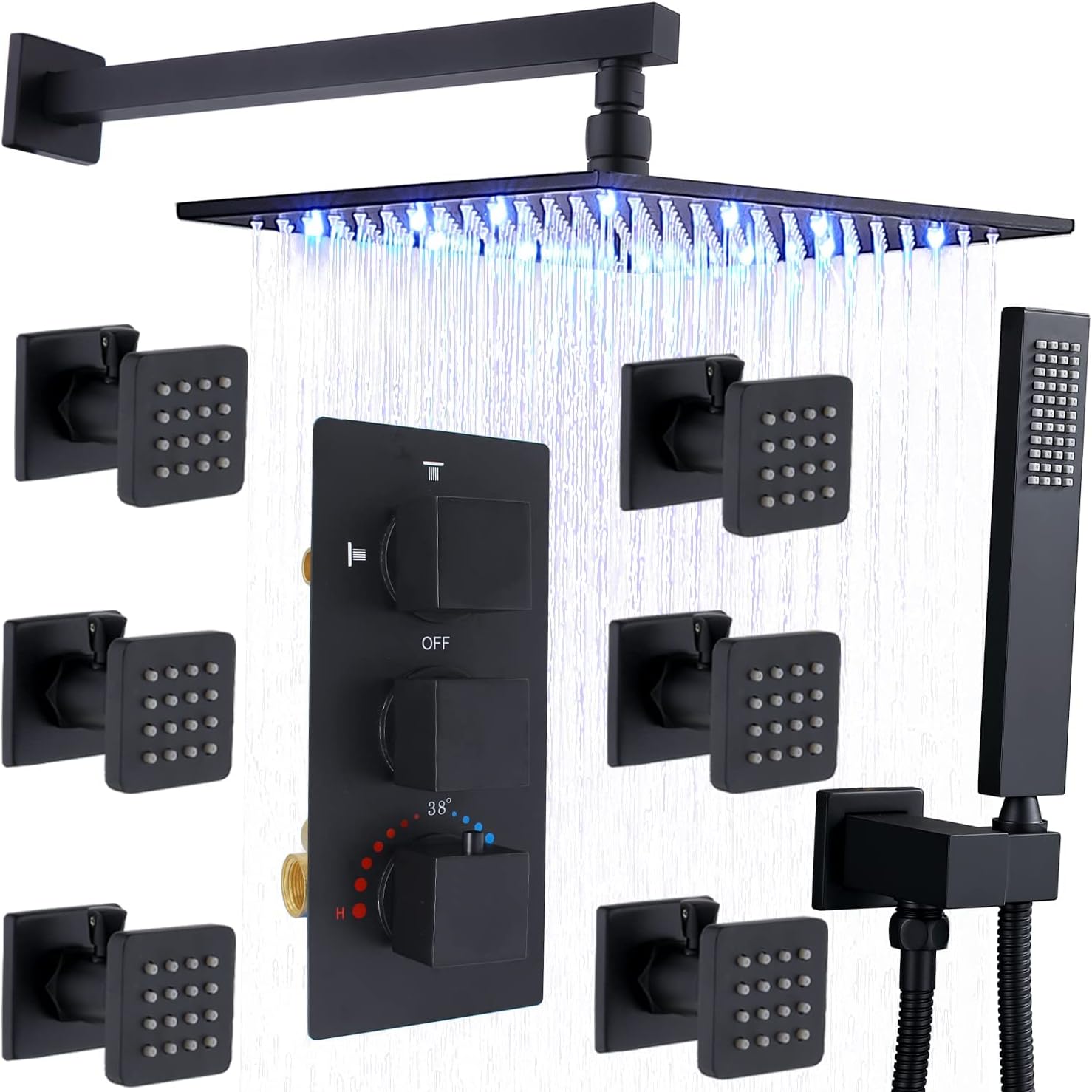 HOMEDEC Ceiling LED Rainfall Shower System with 6 Body Jets Sprays