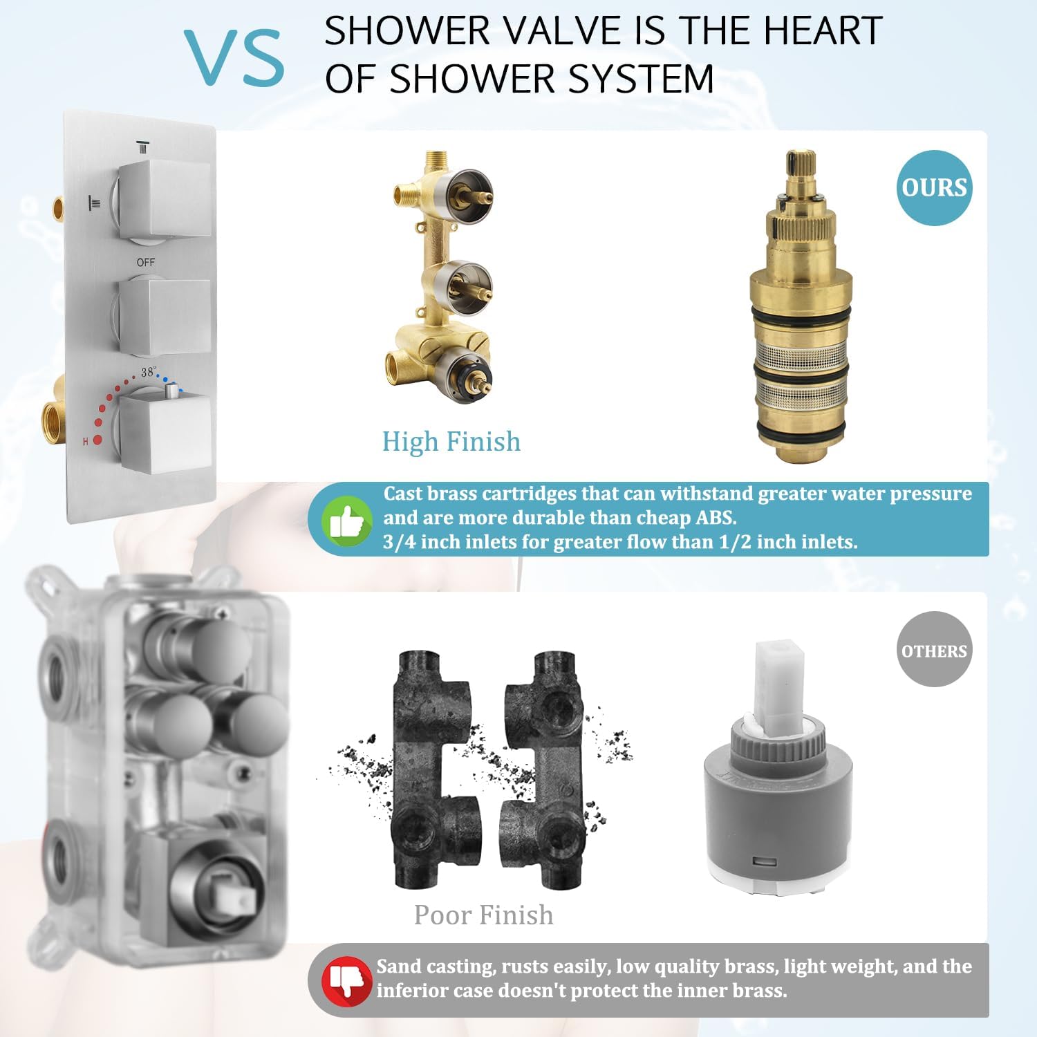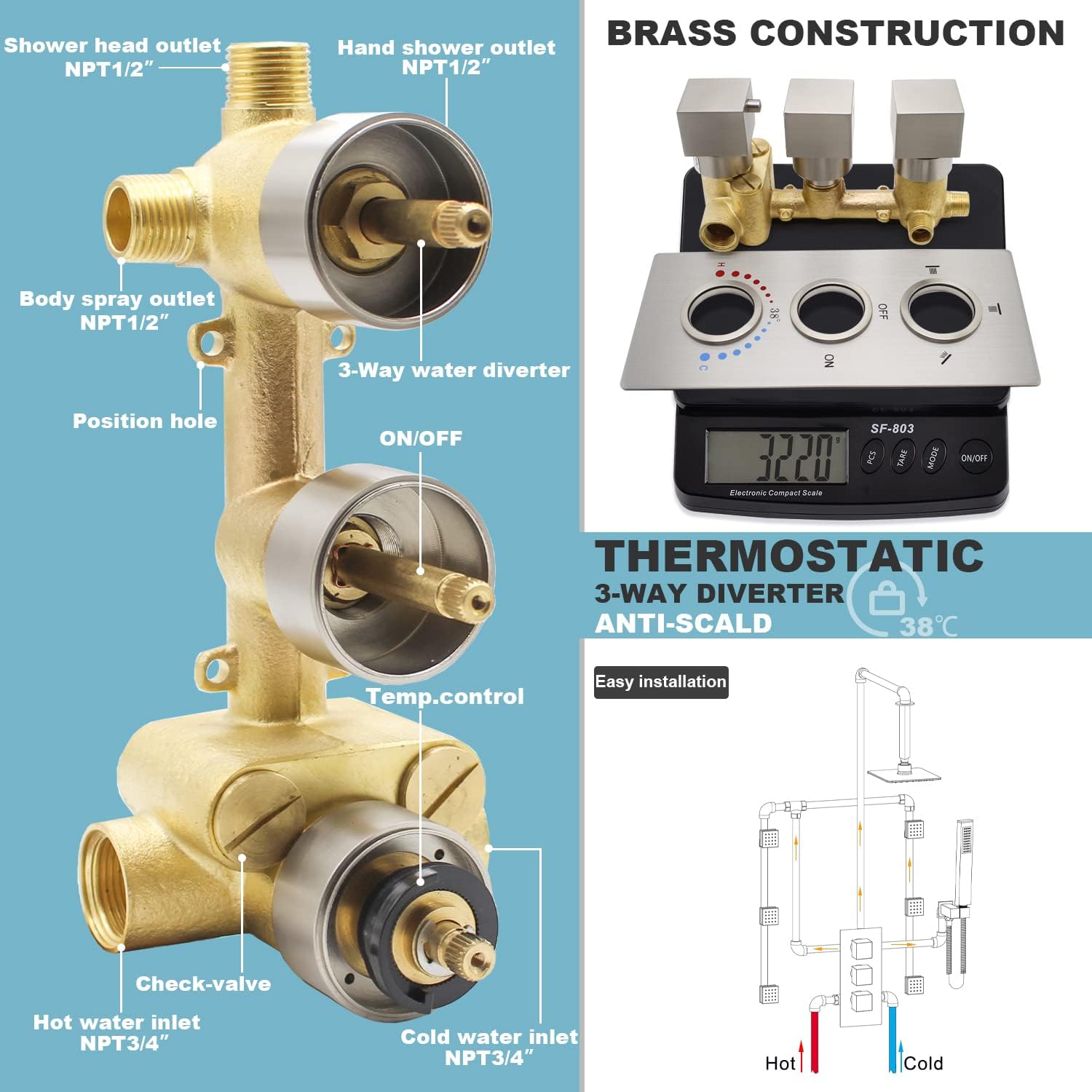 【Thermostatic Rain Shower】- HOMEDEC thermostatic rain shower full body shower system provides a luxurious and comfortable showering experience. Brushed nickel finish. Constant temperature design, no need to adjust the temperature every time. No need to be afraid of scalding. 【LED LUXURY SHOWER HEAD】- 12-inch shower head has multiple tiny nozzles, a high-pressure rain shower, LED…