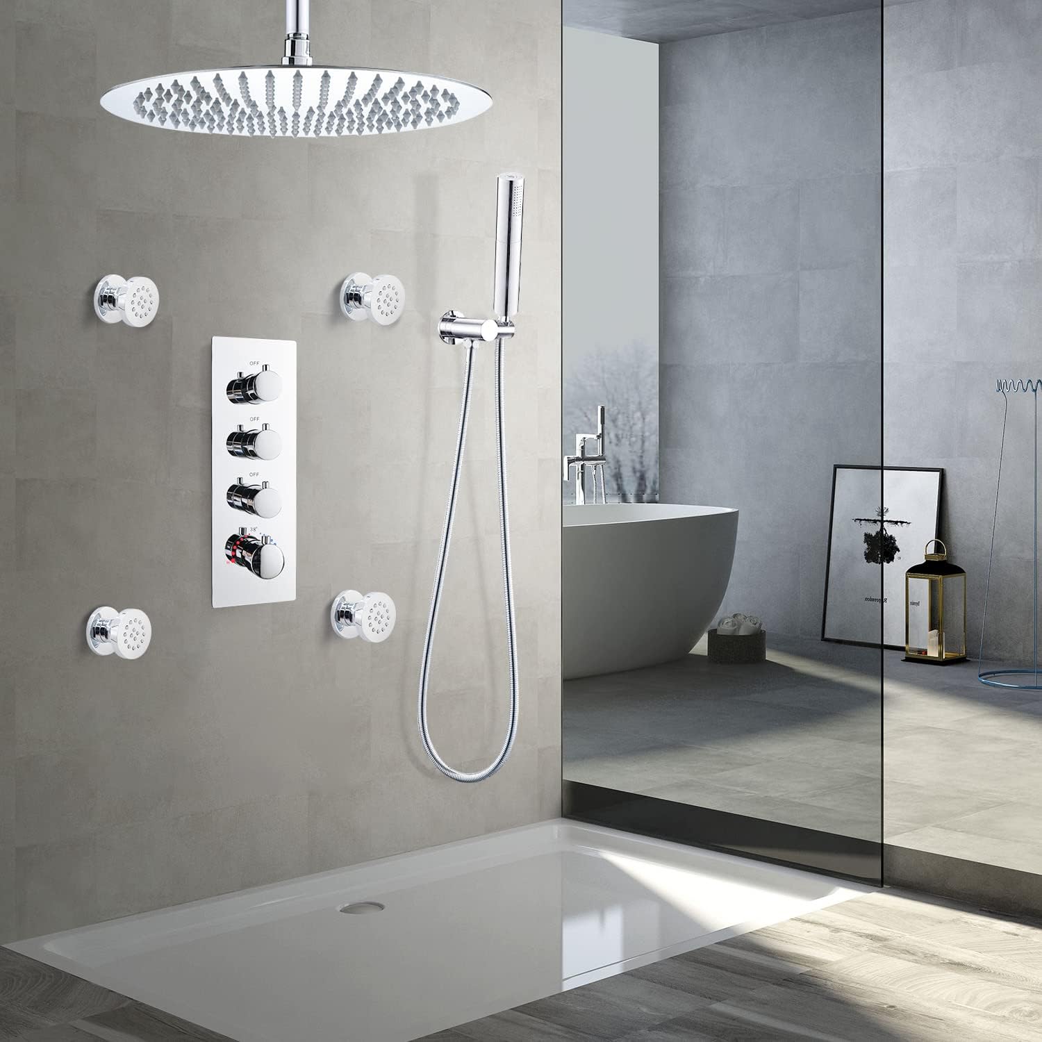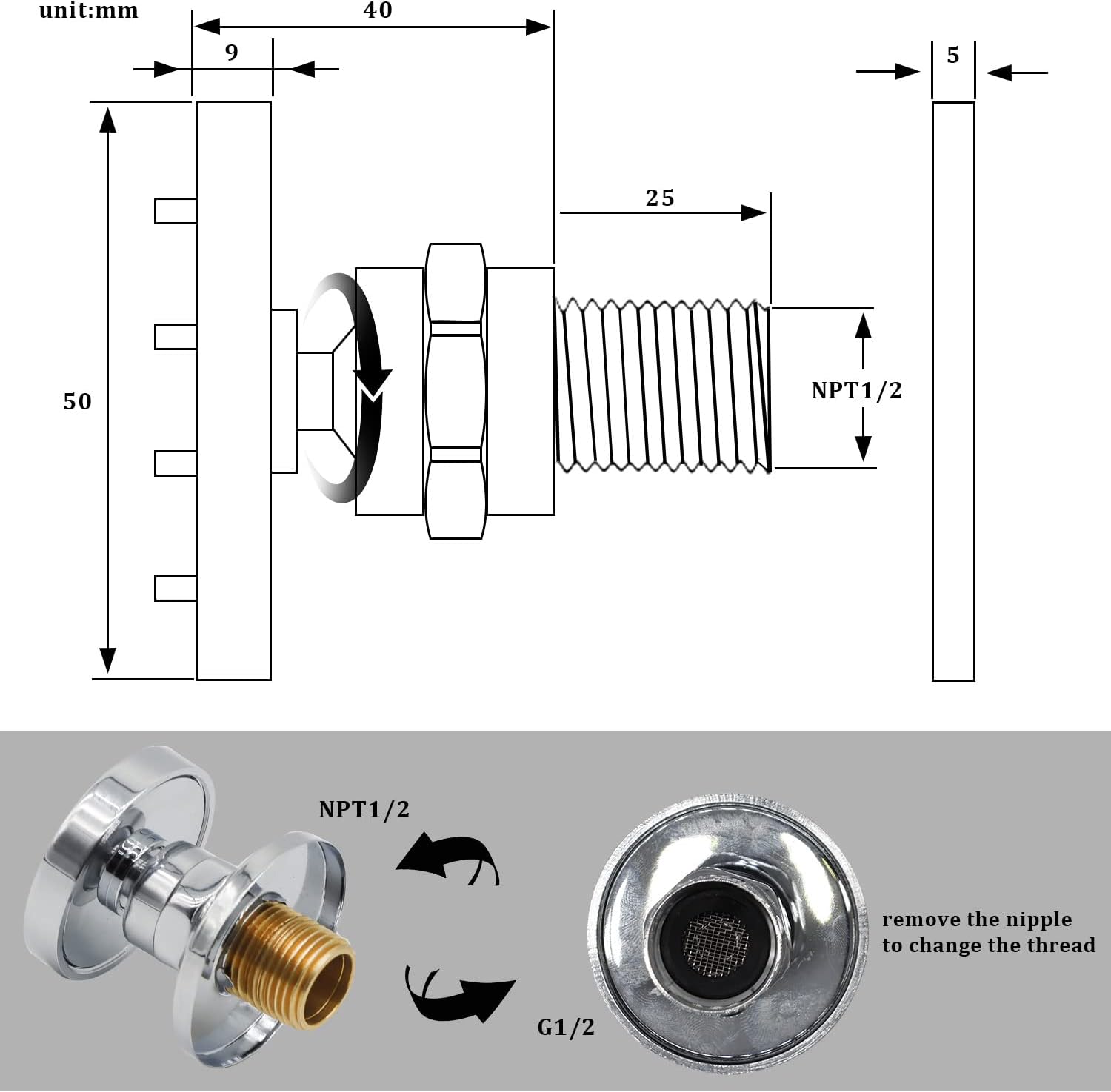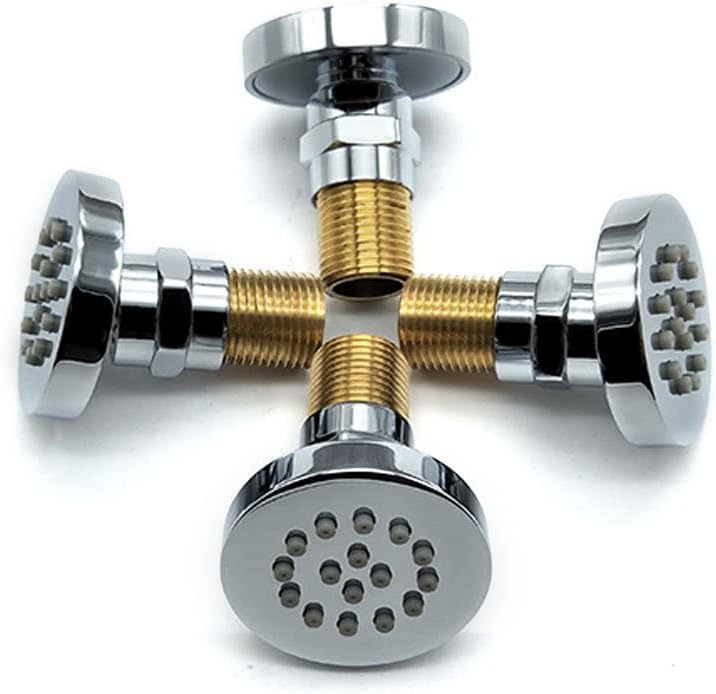 MATERIAL: High quality brass material, Chrome Finish SIZE: Dia 2inch.The size is marked on the picture CONCEALED INSTALLATION: Connect size NPT1/2”, Easy to Install. Fits Standard American. ADJUSTABLE: Up/down/left/right rotation direction, corresponding to the requirements of you and your family. INCLUDING: 4 pcs brass shower spa body jet, which can let you feel the home…