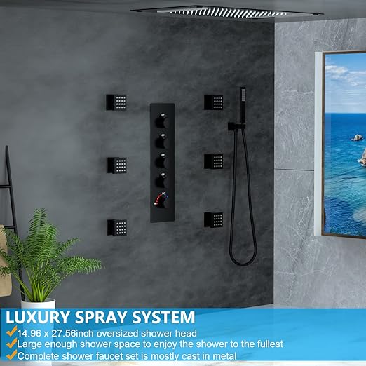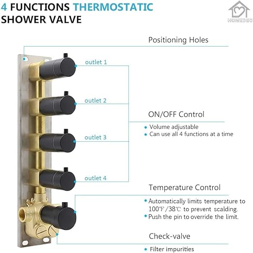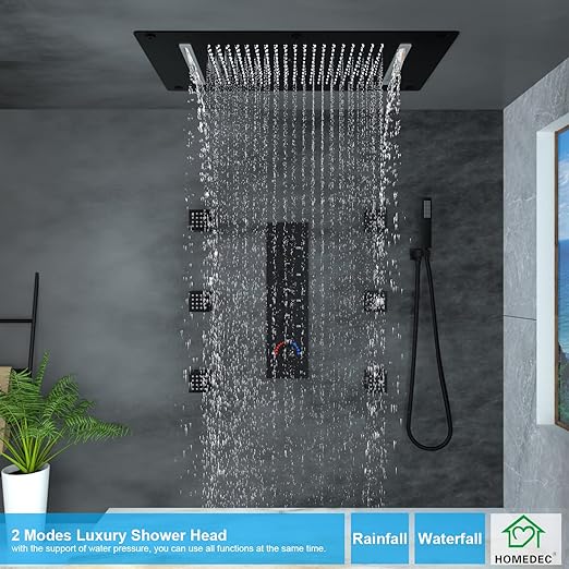 About this item 【2-MODE LUXURY SHOWER HEAD SYSTEM】Unique 2-in-1 design makes a difference, large area rain mode, and comfort waterfall mode, with our 4-way thermostatic shower valve, you can use one or ALL FUNCTIONS AT THE SAME TIME. 【THERMOSTATIC 4-WAY SHOWER VALVE】The hot water and cold water are mixed by the mixer to realize constant…