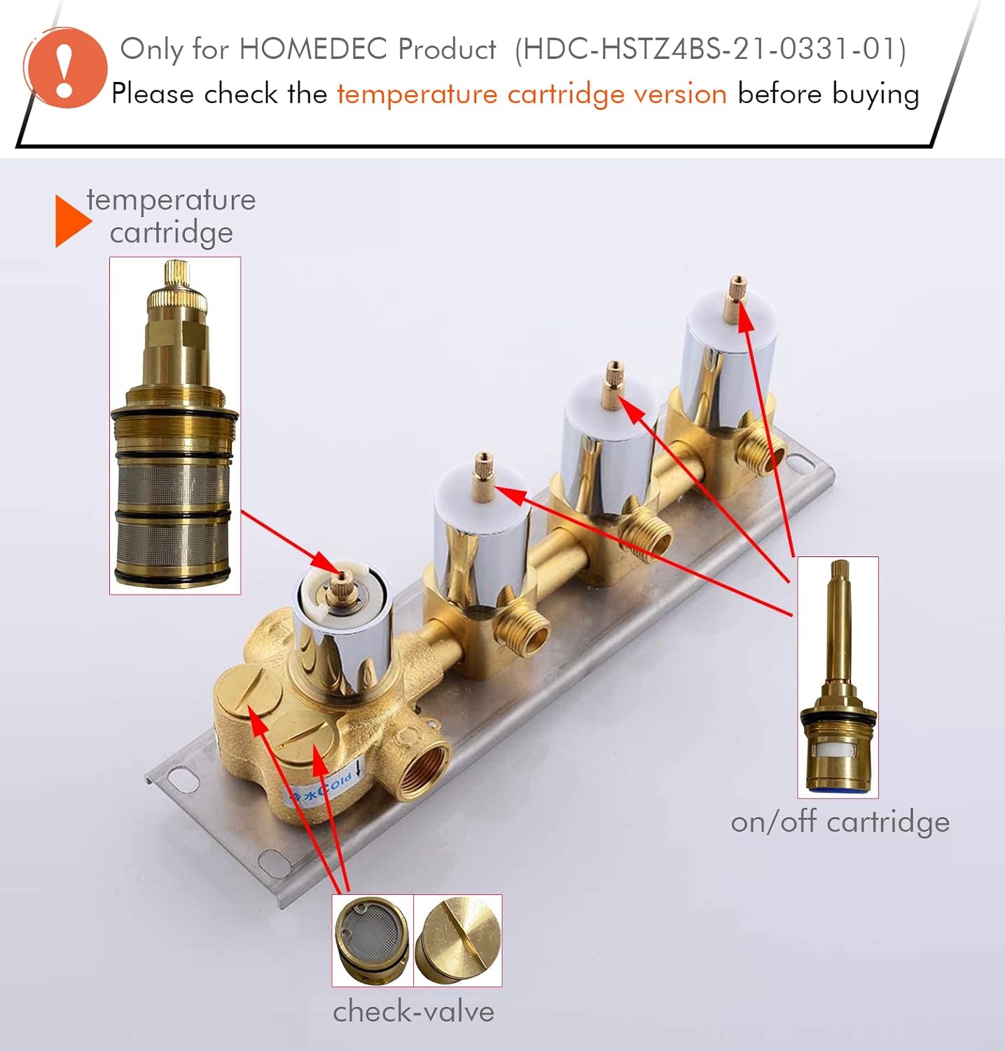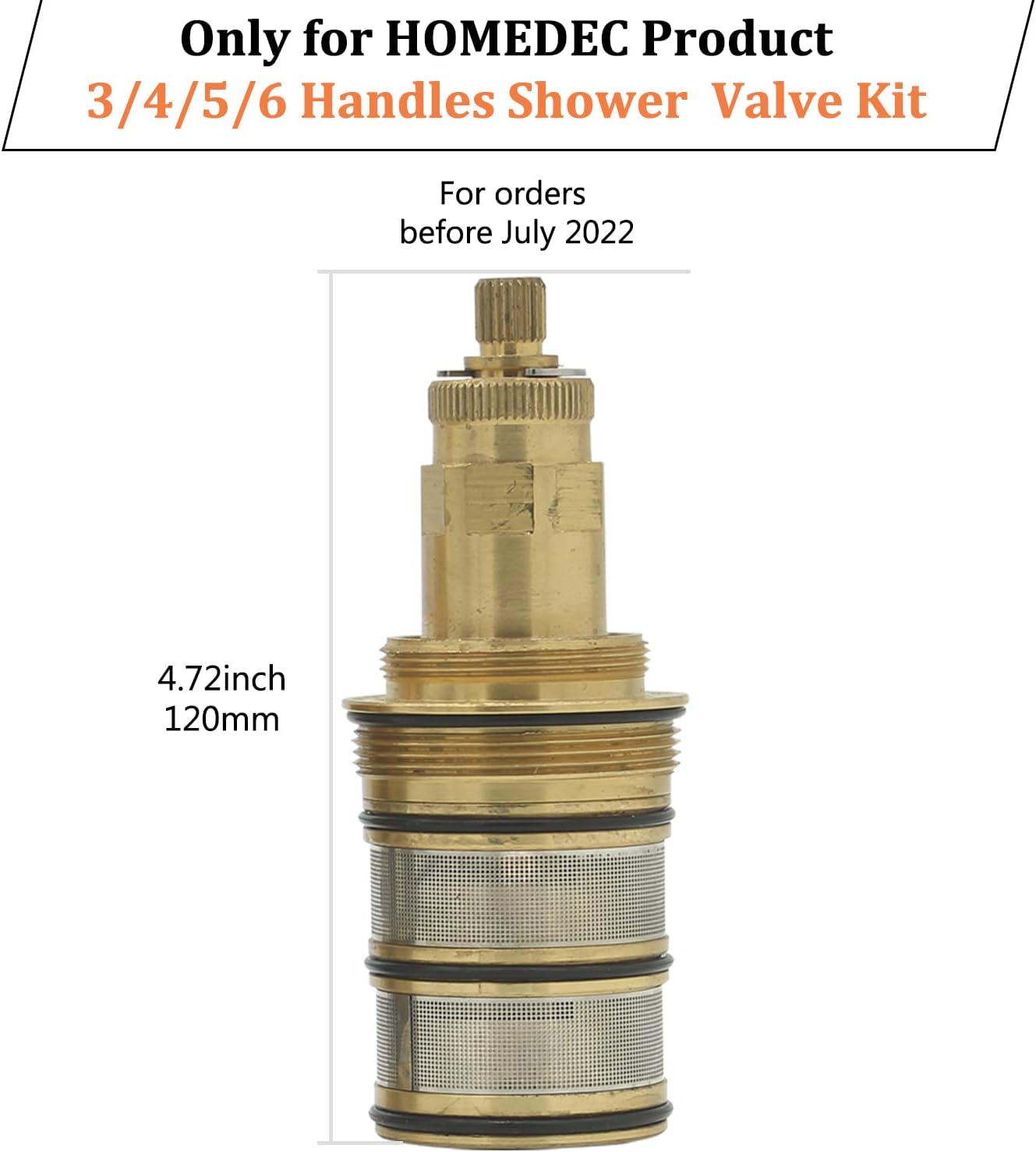 【Important Note】 Due to our cartridge upgrade, this cartridge is only available for purchase on orders placed before HOMEDEC July 2022. 【Applicable To】 This cartridge can be used with HOMEDEC brand 3/4/5/6 function shower valves, as well as shower systems that include their shower valves. 【Difference】 The length of the old cartridge is 4.72 inches…