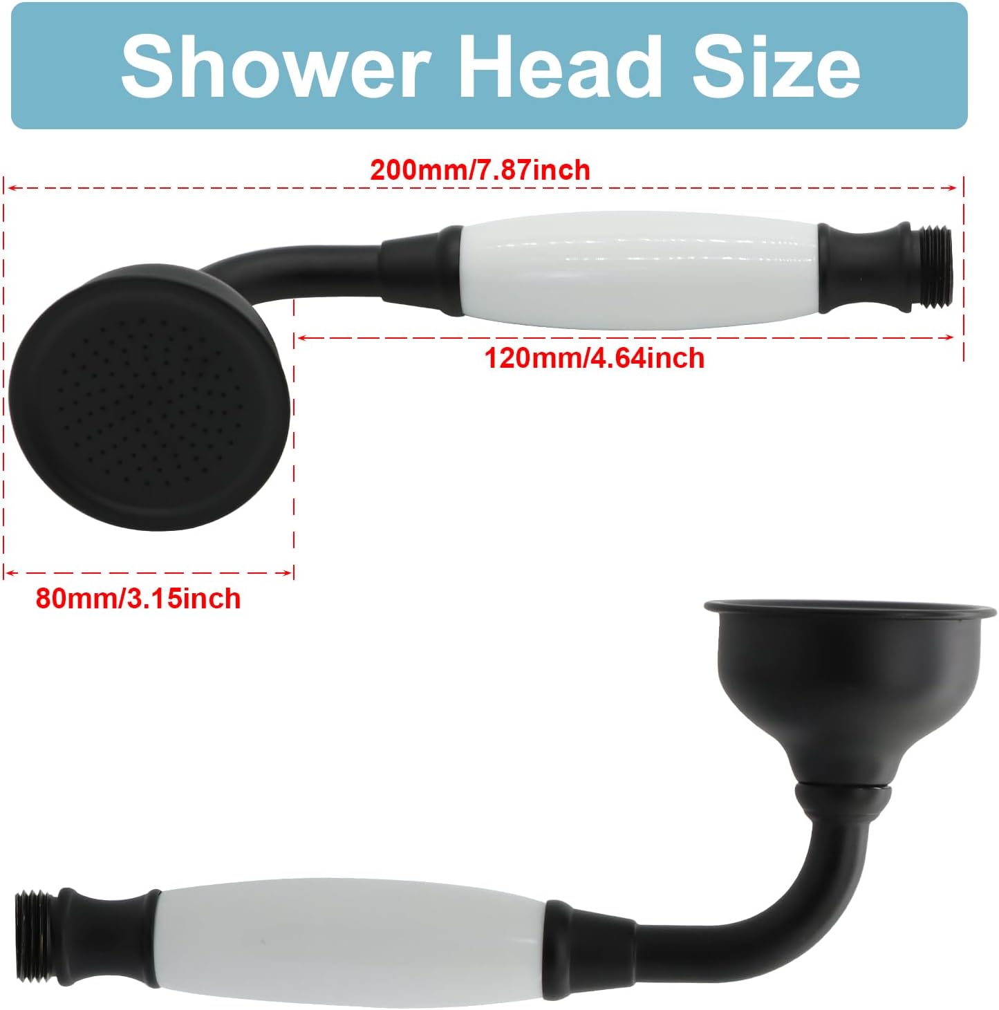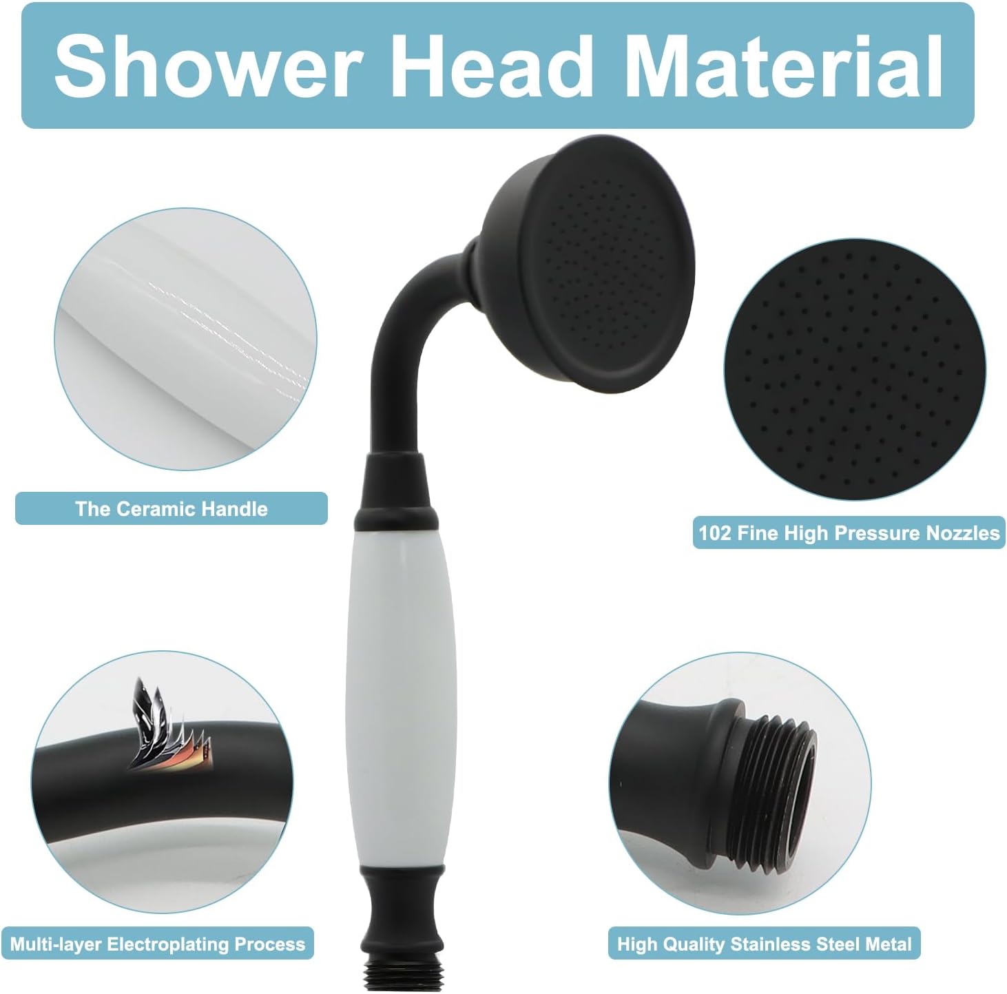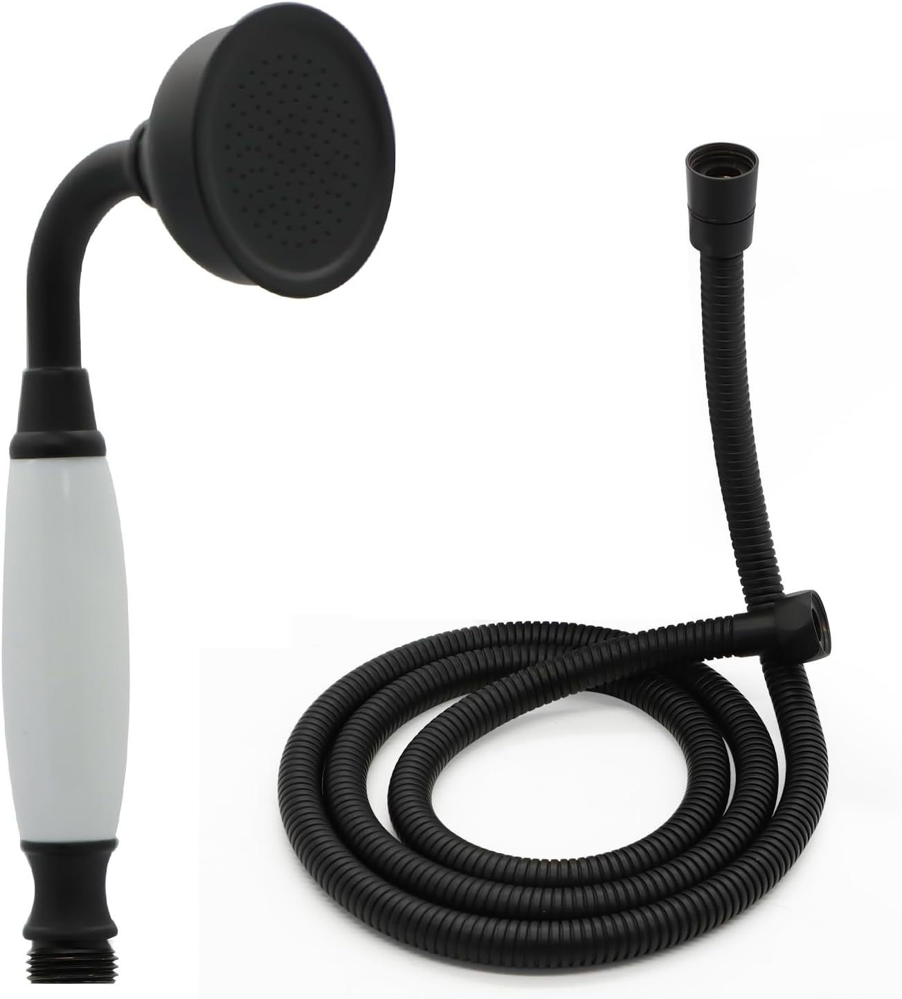 ANTIQUE SHOWER HEAD : High Quality Brass and Ceramics Constrution Handsets. 60″ LONG FLEXIBLE HOSE : Explosion proof hose 304 Stainless Steel exterior, EPDM inner tubing INCLUDE : Brass vintage handheld shower sprayer with ceramic handle , 60″ stainless steel hose. Classical Design. Finished. Matte Black Easy to Install.