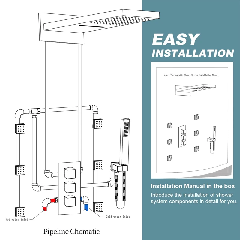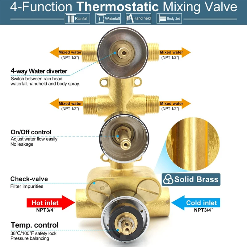 【✅ANTI-SCALD WATER CONTROL】Thermostatic mixer valve maintains water temperature continuously and remembers the temperature you set. No need to adjust it each time. No sudden hot or cold water – very friendly to elderly or children.