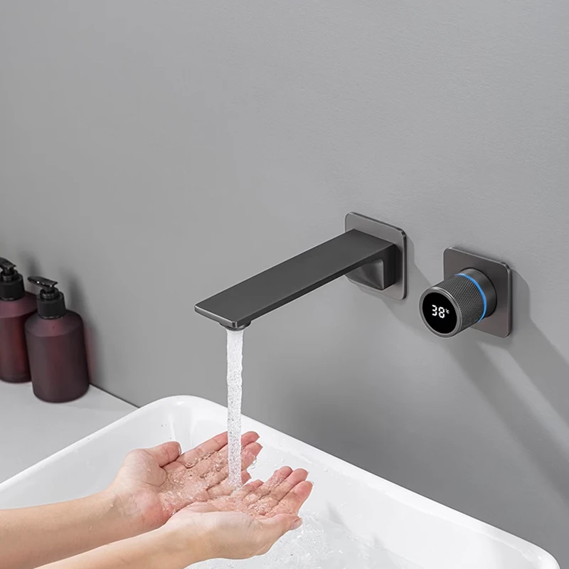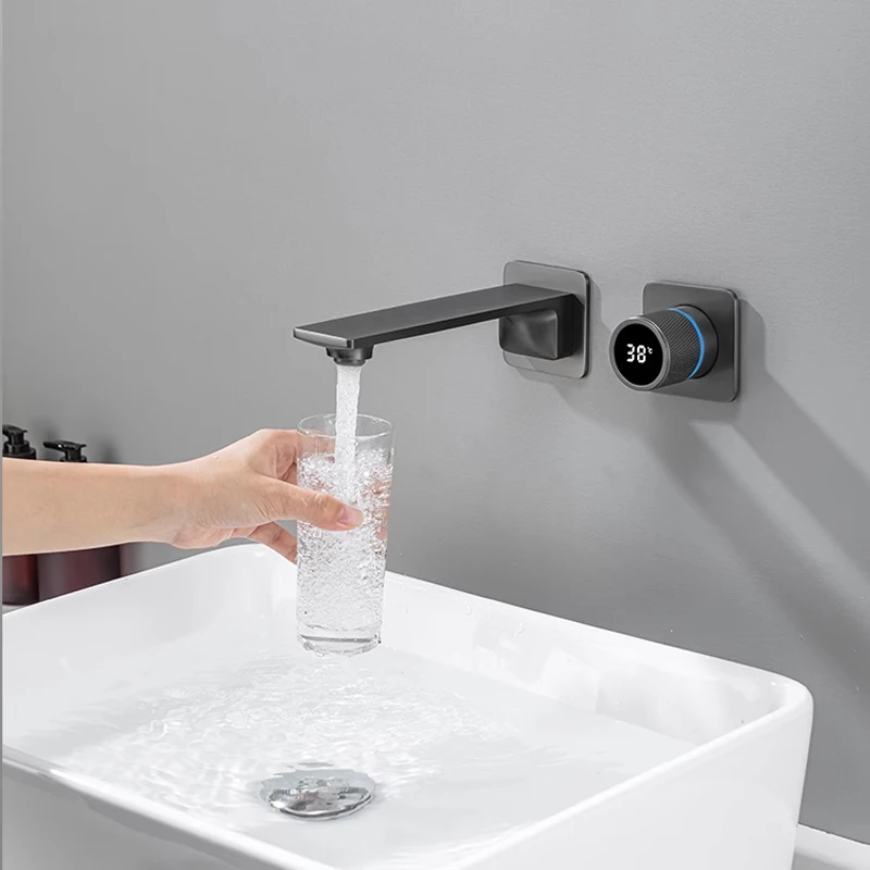 Bathroom Faucet Wall Mounted LED Temperature Digital Display Faucet
