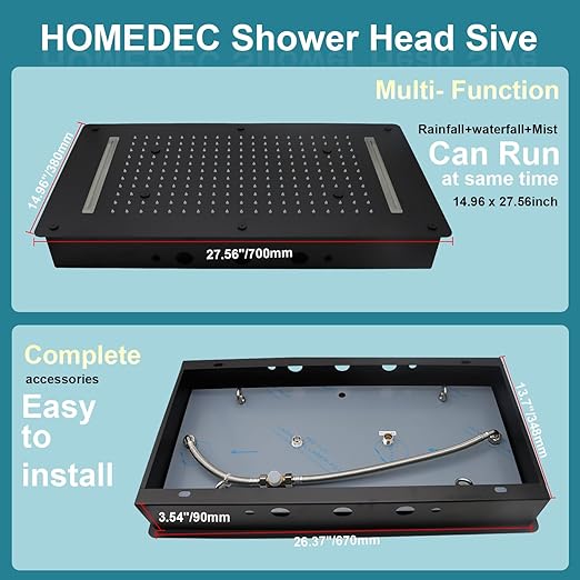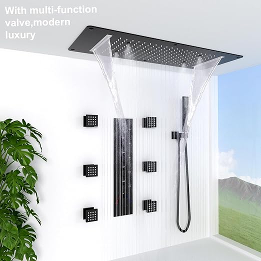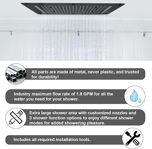 About this item 3-FUNCTION SHOWER HEAD — Meets a variety of shower needs, 3 in 1 shower head has 4 functions, respectively, rain, waterfall and spray. You can use one or more functions. Give you a luxurious and comfortable shower. LUXURY SHOWER HEAD SYSTEM — 14.96 x 27.56inch oversized shower head, large enough shower space…