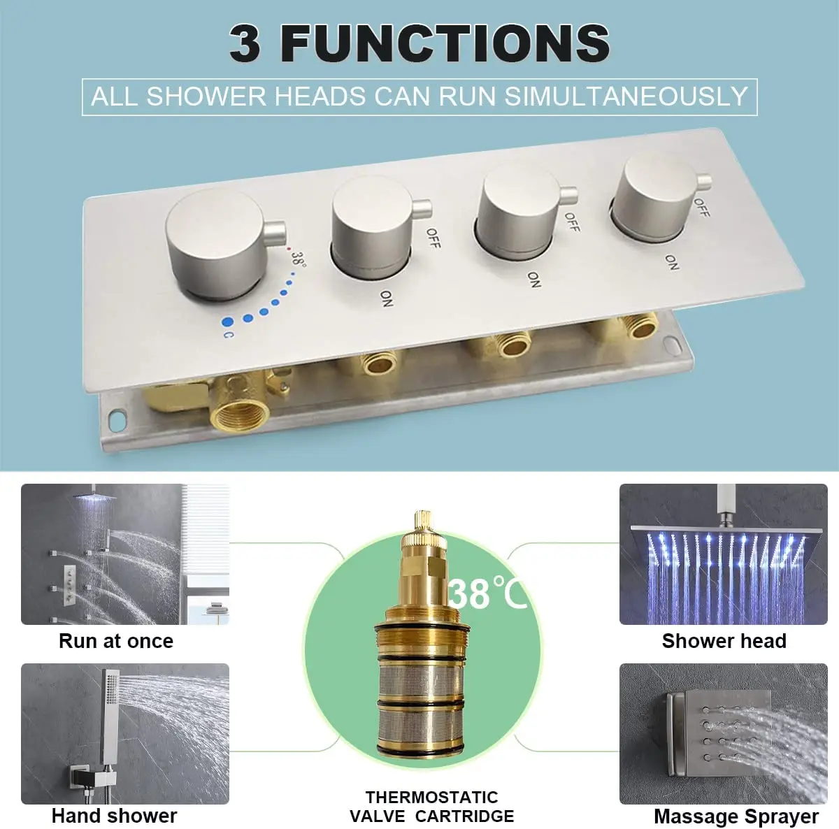Money-saving invest on this full shower fixture set for your next ten years. Constructed from solid brass and SS 304 stainless