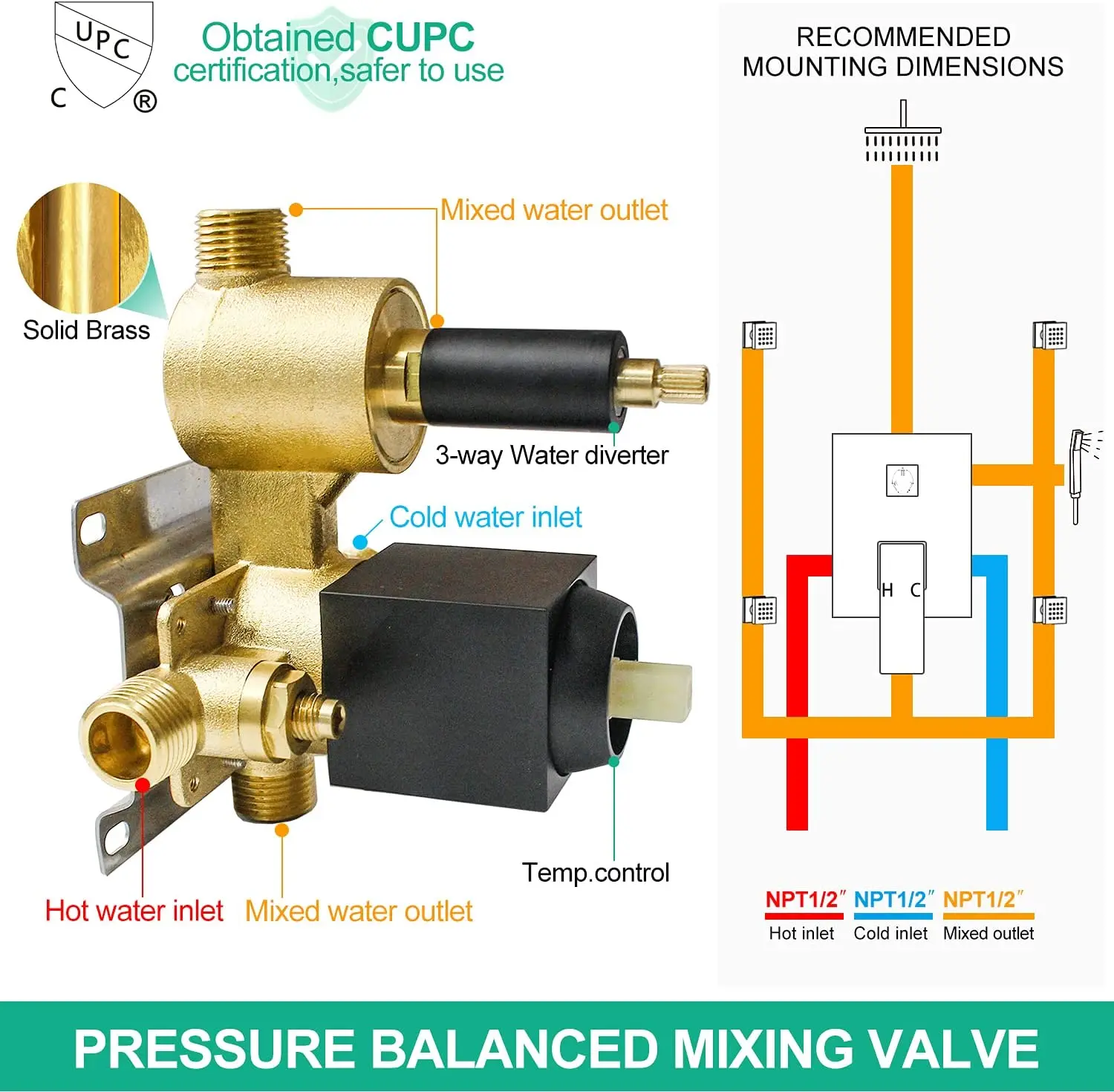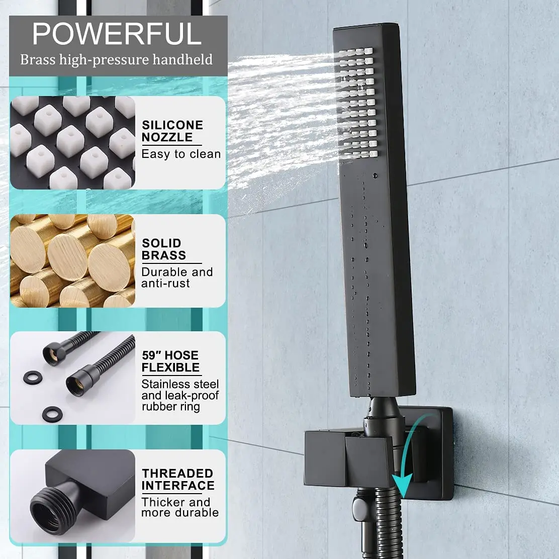 【Back Massage Sprayer】Our full body shower system is equipped with 6 body massage nozzles, which can be adjusted in multiple directions, so that you can shower without dead spots, which undoubtedly adds more fun to your shower