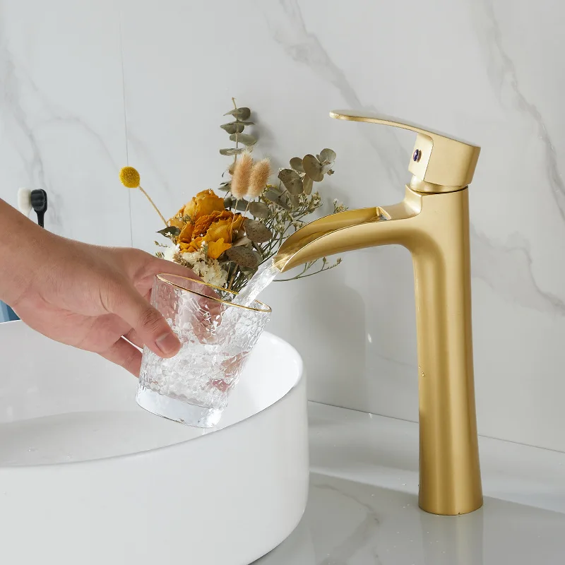 Modern Nordic Style Champagne Bronze Gold Vessel Sink Wash Faucet With CUPC