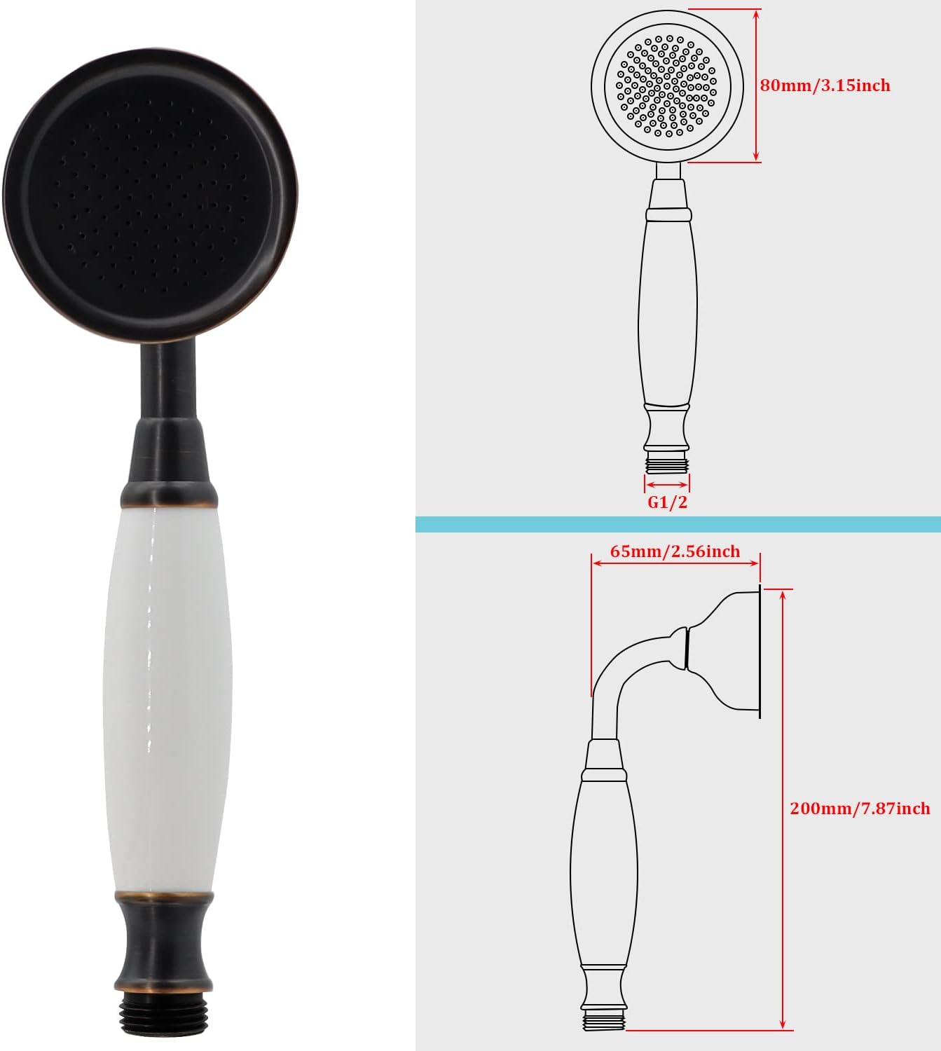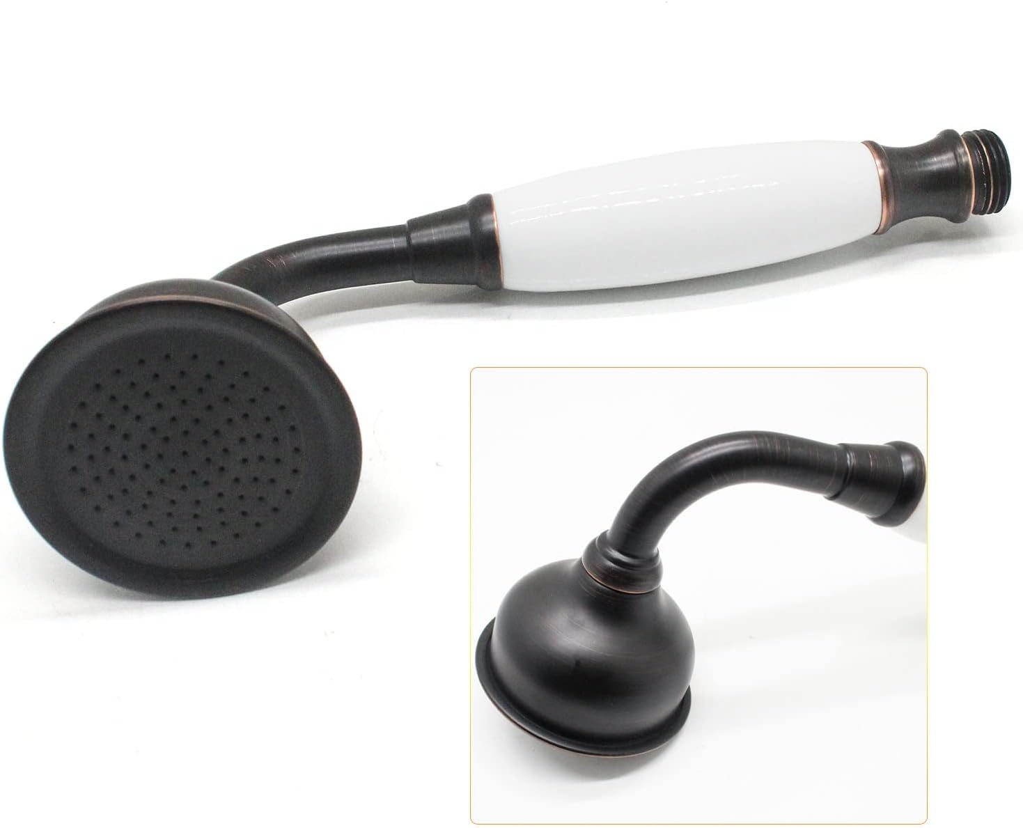 ANTIQUE SHOWER HEAD : High Quality Brass and Ceramics Constrution Handsets. 60″ LONG FLEXIBLE HOSE : Explosion proof hose 304 Stainless Steel exterior, EPDM inner tubing INCLUDE : Brass vintage handheld shower sprayer with ceramic handle , 60″ stainless steel hose. Classical Design. Oil Rubbed Bronze Finished. Easy to Install.