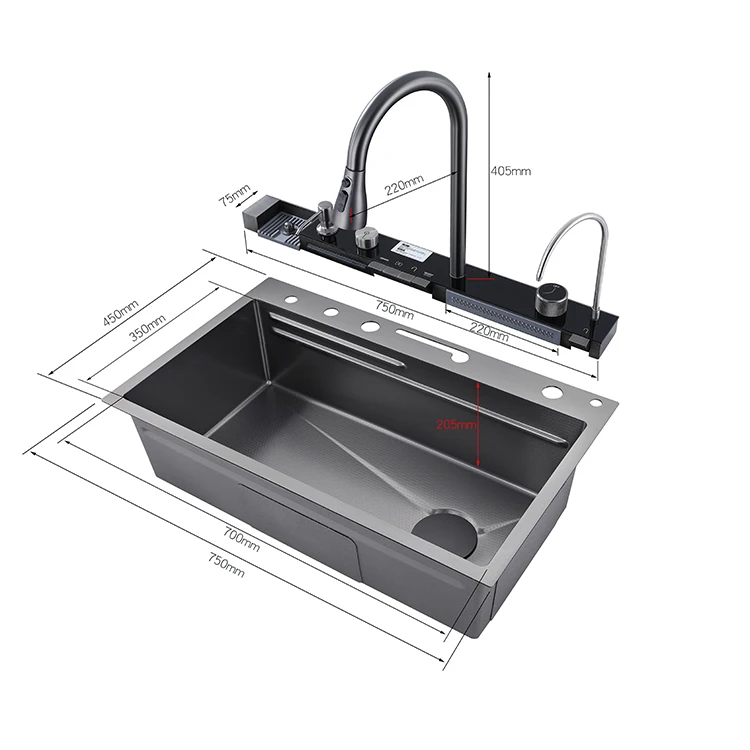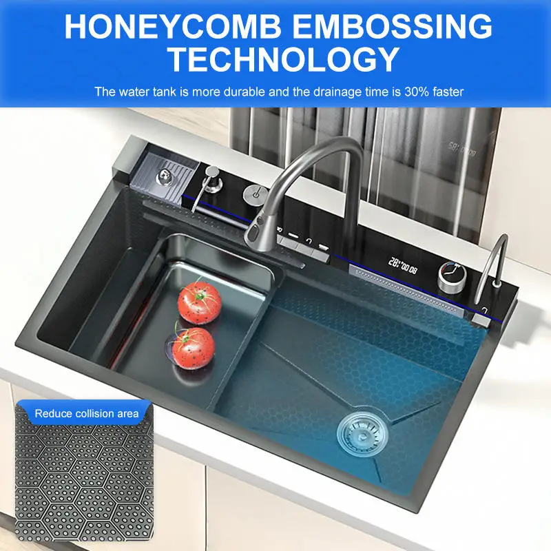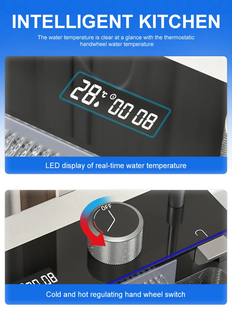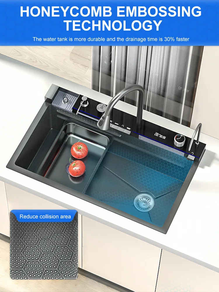 Intelligent display multi-functional nanometer stainless steel sink basin