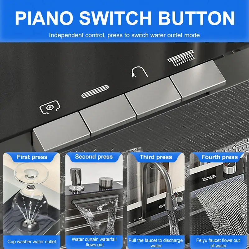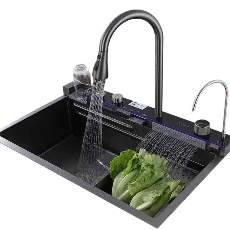 Pull out faucet, waterfall outlet, filter faucet, cup washer, nano stainless steel sink basin