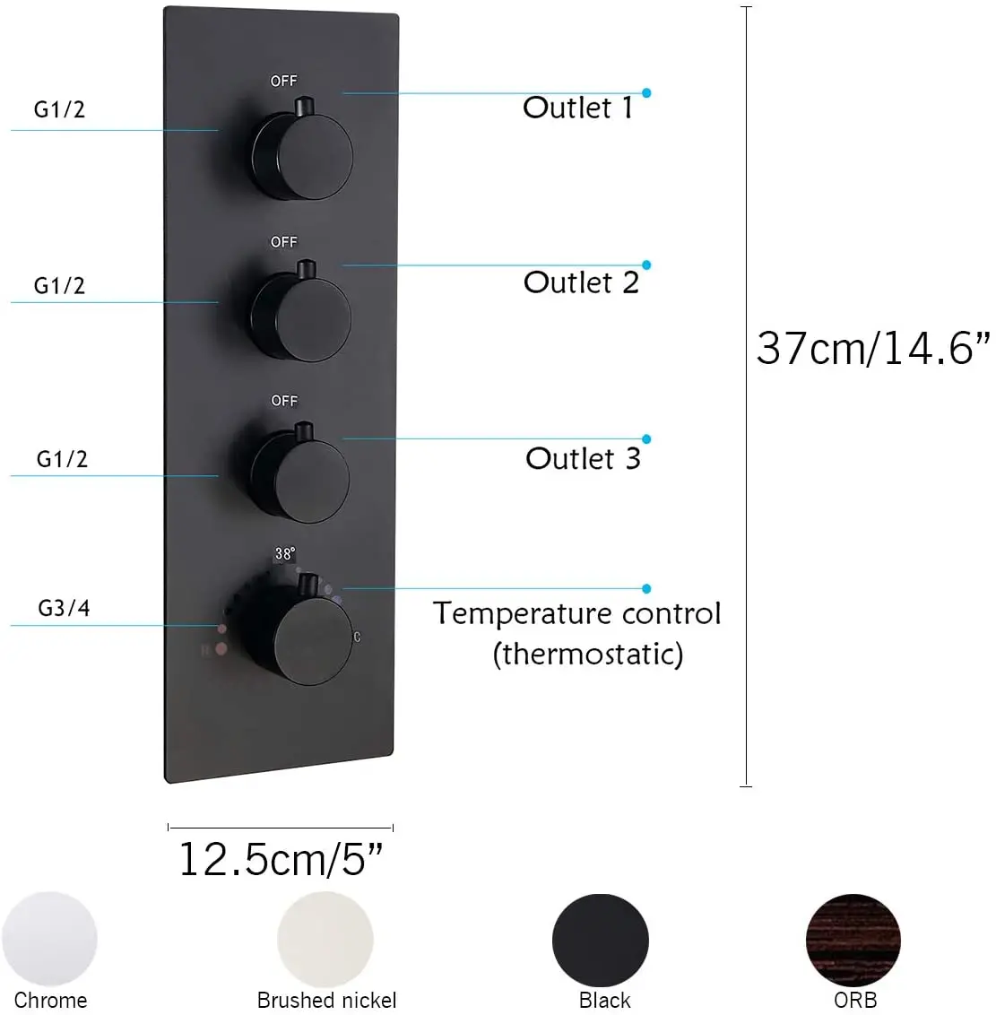 Pressure Flow Control Mixer Thermostatic Mixing Shower Diverter 3 Function Brass Shower Valve