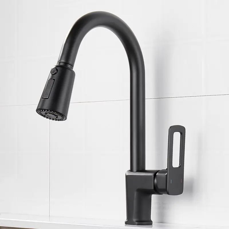 Modern Black Pull Out Kitchen Faucet Mixer