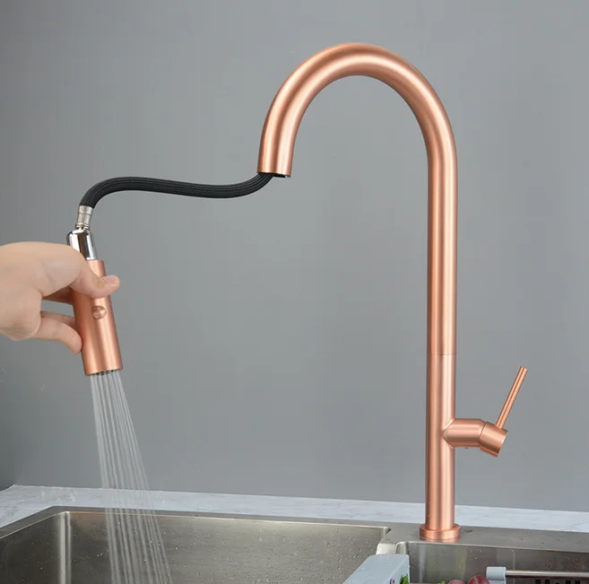 Rose Gold 304 Stainless Steel Pull Out Kitchen Sink Faucet