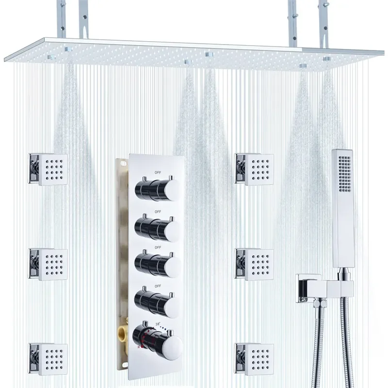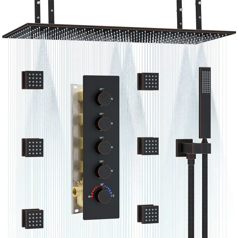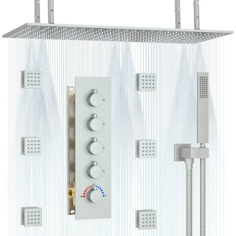 Super Large Brushed Gold Large Thermostatic Bathroom Shower System Set with 15.7 X 31.5 inch Dual Functions Ceiling Shower Head