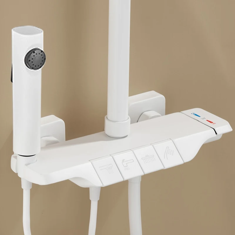Thermostatic brass square top spray piano button four-function White Smart rain shower set Douche