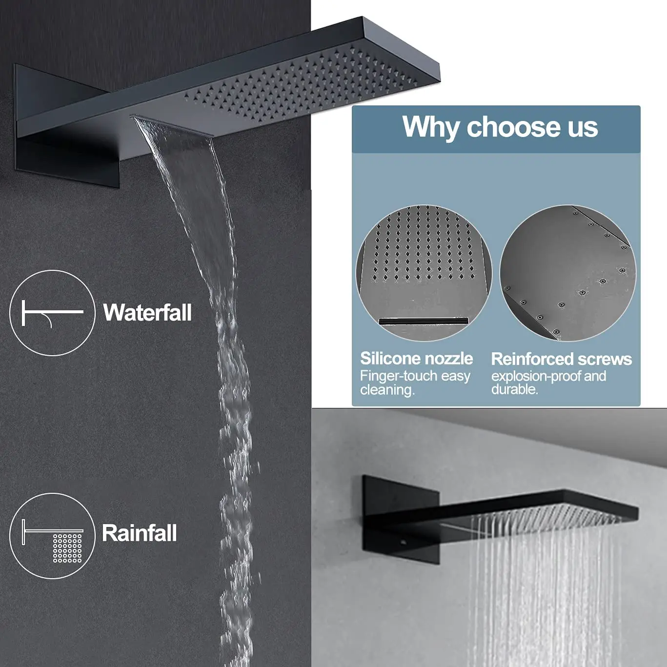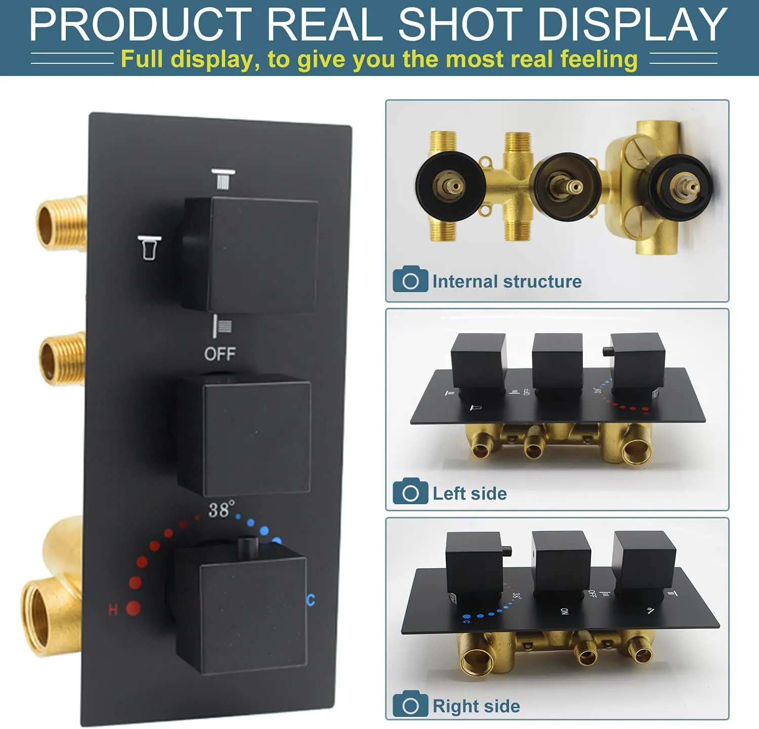 Product Description Specification Name Thermostatic Shower Panel Dual-function Rainfall Shower Head with Body Jet and Handheld Sprayer, Solid Brass Shower Faucet sets Material Of Body Brass Shower head Size 12 inch Surface Brushed/black/chrome Cartridge Lifetime 500000 Times Opening Service ODM+OEM Function Cold And Hot Water Mixer Usage Bath Room Payment T/T, L/C At Western Union…