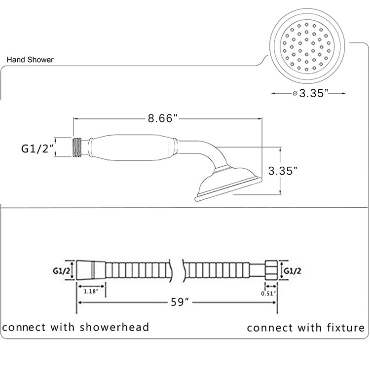 PACKAGE INCLUDES: Brass hand shower head spray, 59″ matching Stainless steel shower hose. Easy to Install.